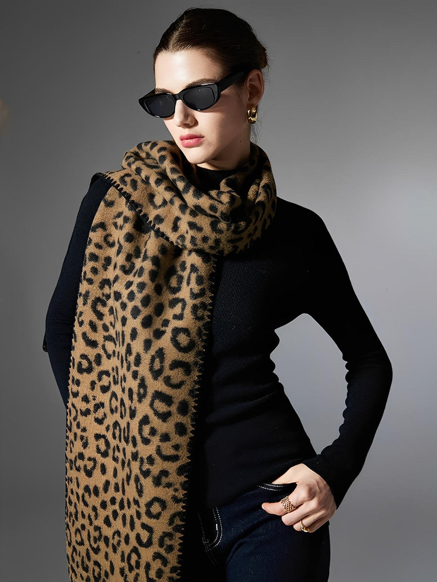 Women's leopard scarf winter, warm soft long scarf, trendy animal print, autumn fashion accessory, chic and bold style, Stegma model