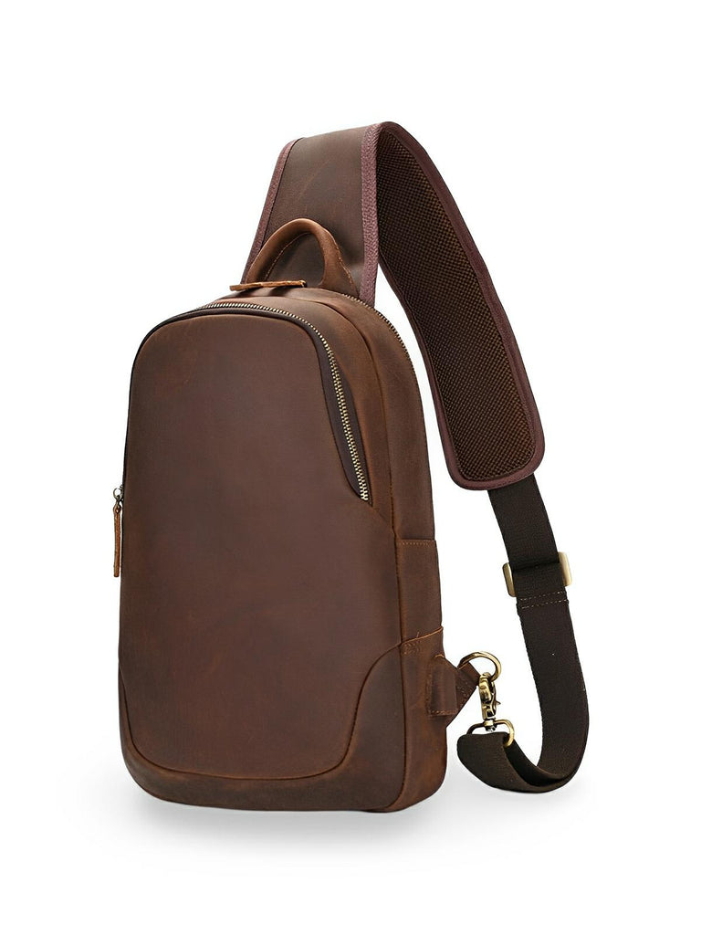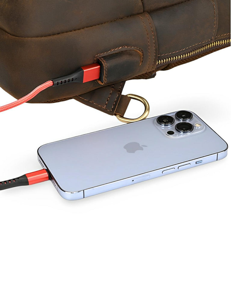 Sacoche d'épaule en cuir, pour l'homme contemporain, USB intégré, modèle Béranger