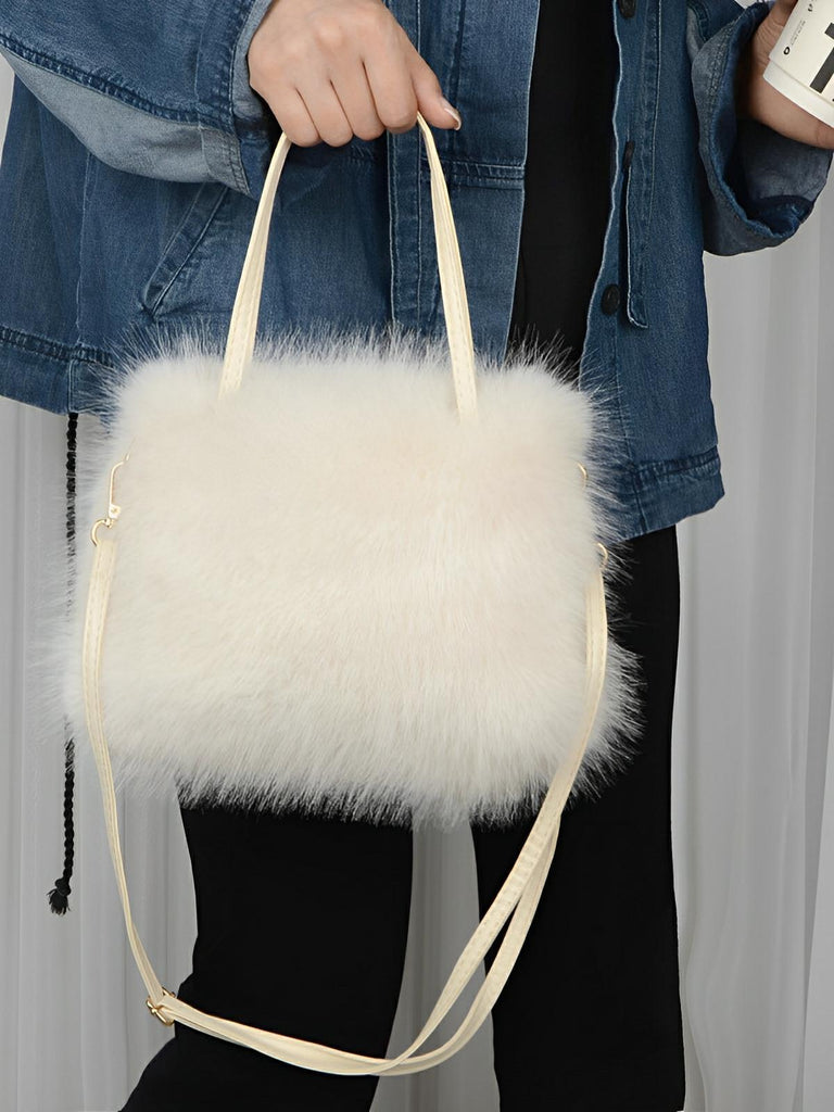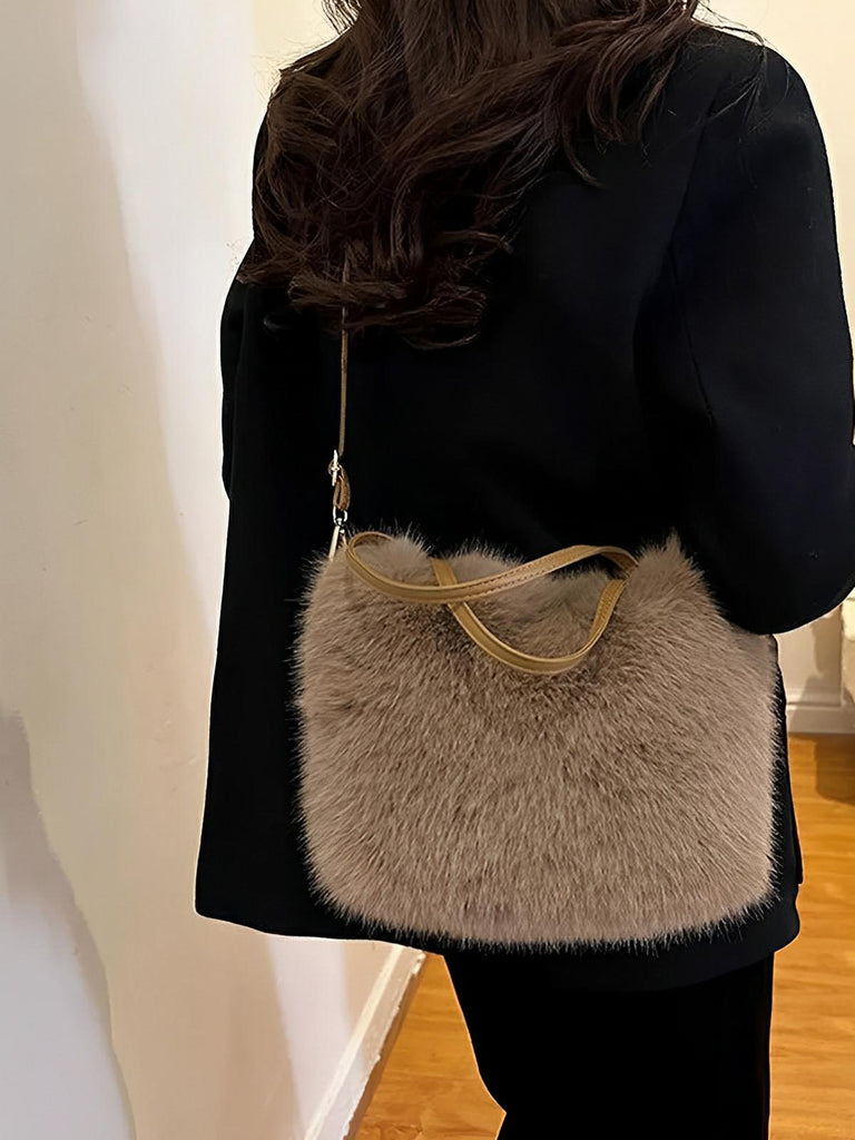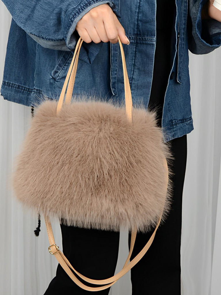 Avec ses lignes douces et son toucher pelucheux, ce mini sac en fausse fourrure deviendra votre complice du quotidien. Confectionné en éco-matériaux doux et résistants , il affiche une silhouette compacte tout en offrant l'espace nécessaire à vos essentiels.