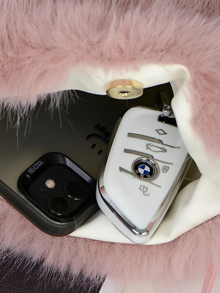 Son fermoir magnétique discret permet une ouverture rapide et pratique, tandis que sa poignée courte en fausse fourrure complète son allure moelleuse et urbaine. Doté d'un intérieur doublé en simili vegan synthétique avec un compartiment pour téléphone, il se veut aussi fonctionnel que tendance.