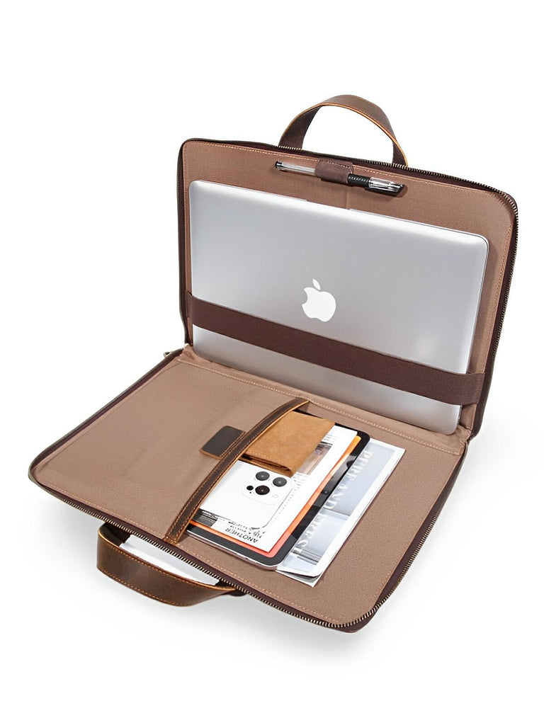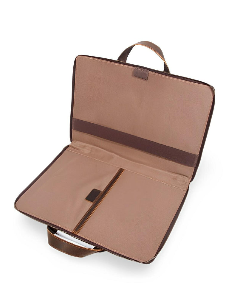 Offrez à votre ordinateur une protection haut de gamme avec cette housse en cuir véritable conçue pour les ordinateurs portables jusqu’à 14 pouces. Fabriquée en cuir pleine fleur, elle se distingue par sa texture vintage et son aspect authentique qui se patine avec le temps.