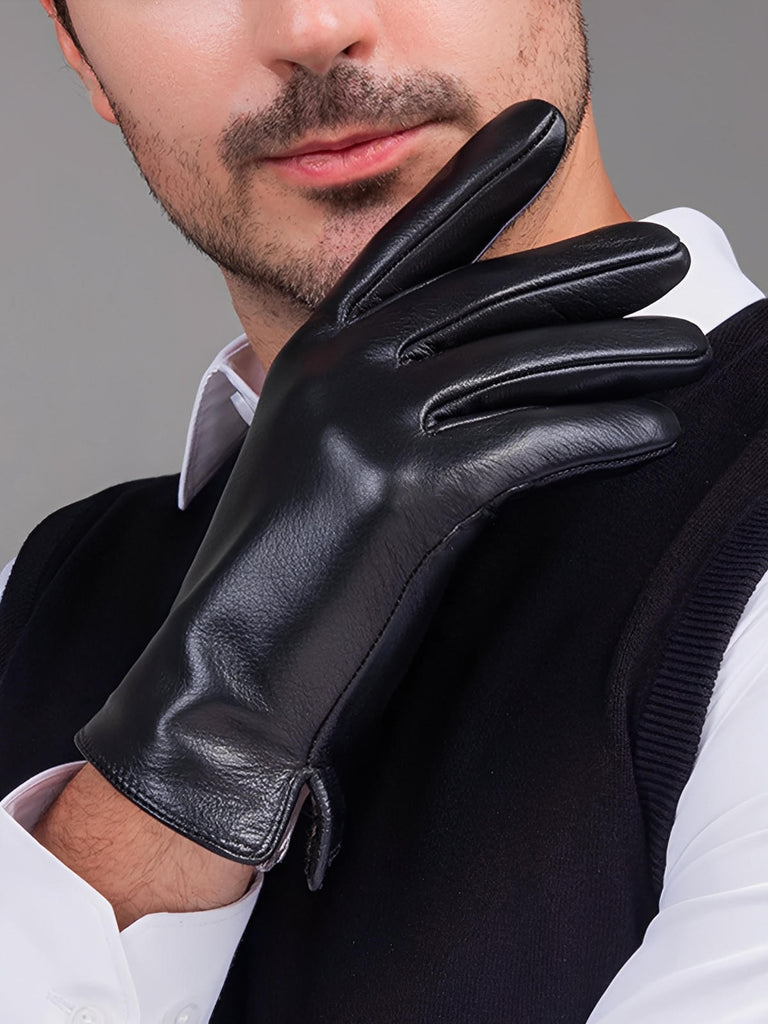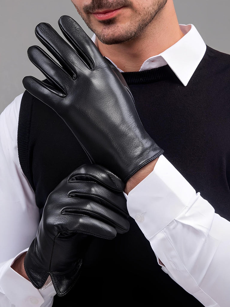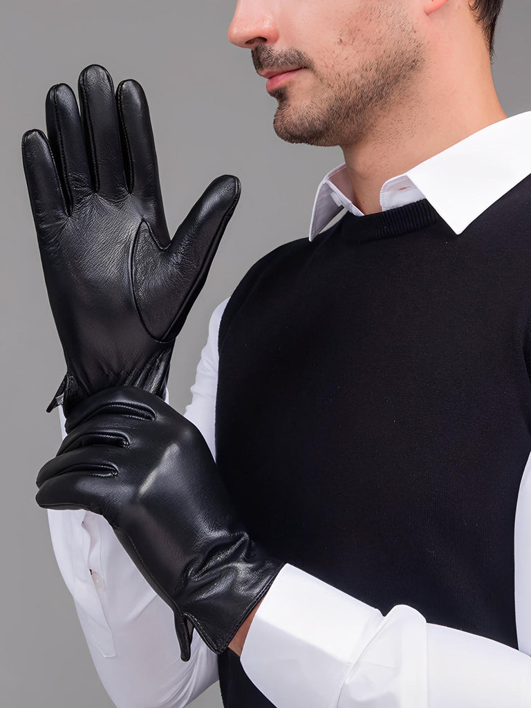 Gants en cuir noir homme, intérieur laine chaude, style business hivernal, gants tactiles hiver, gants doublés chauds, cuir véritable souple, gants élégants noirs, protection contre le froid, modèle Doby