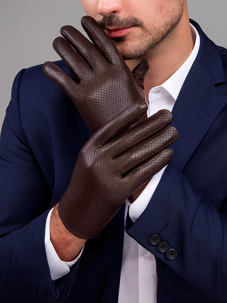 Gants en cuir homme printemps, gants tactiles cuir, gants microperforés légers, gants bouton pression habillés, gants de conduite homme, modèle Guillaume