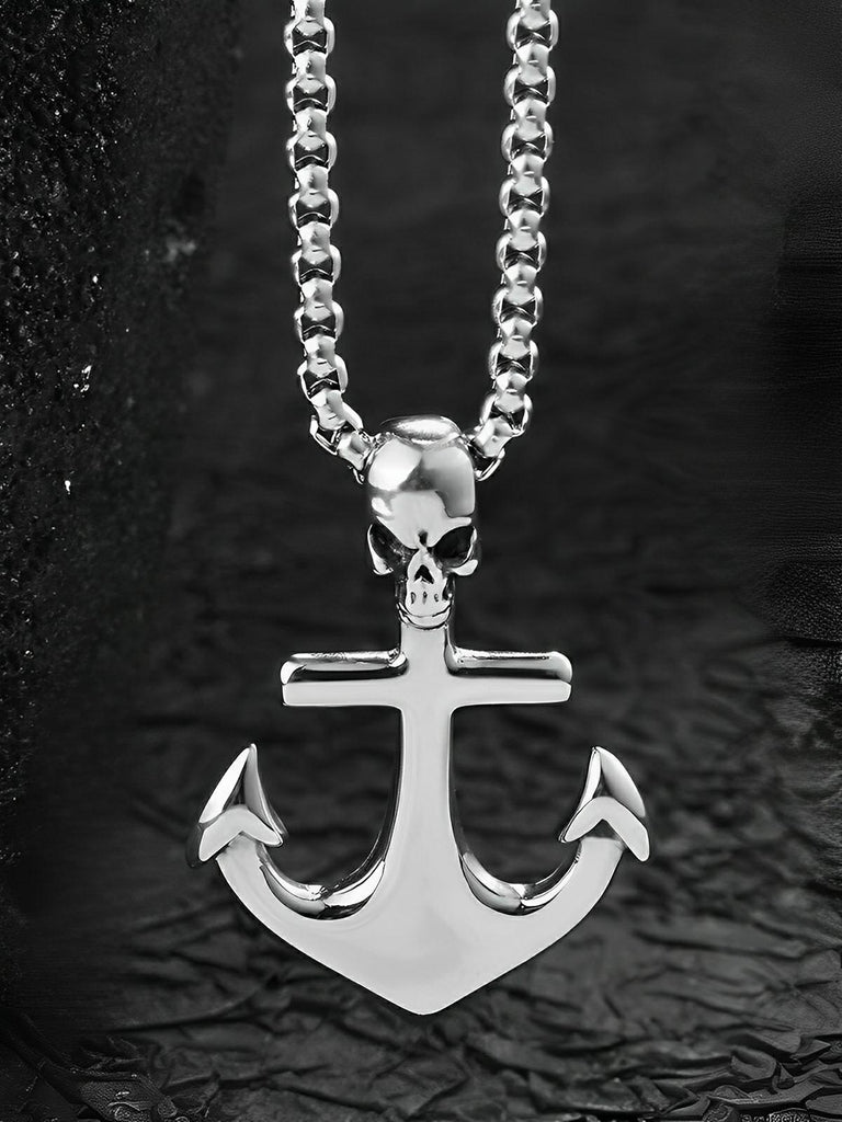 Collier pendentif ancre et tête de mort, en acier inoxydable, maille vénitienne, modèle Orion