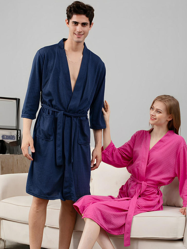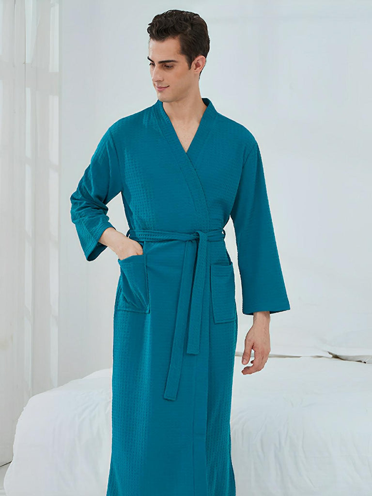 Peignoir homme femme, coupe longue, léger absorbant, effet nid d'abeille, ceinture réglable, confort après bain, nombreuses couleurs, modèle Talède