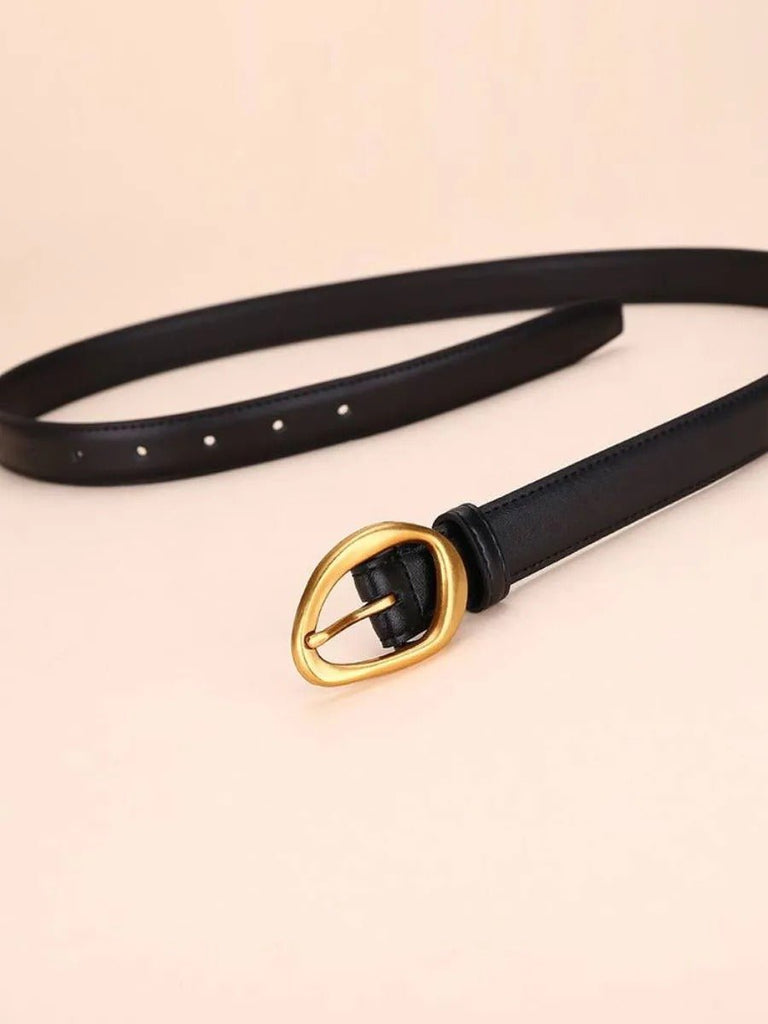 Ceinture femme en cuir, boucle dorée arrondie moderne, ceinture fine classique, accessoire mode 2025, modèle Adla