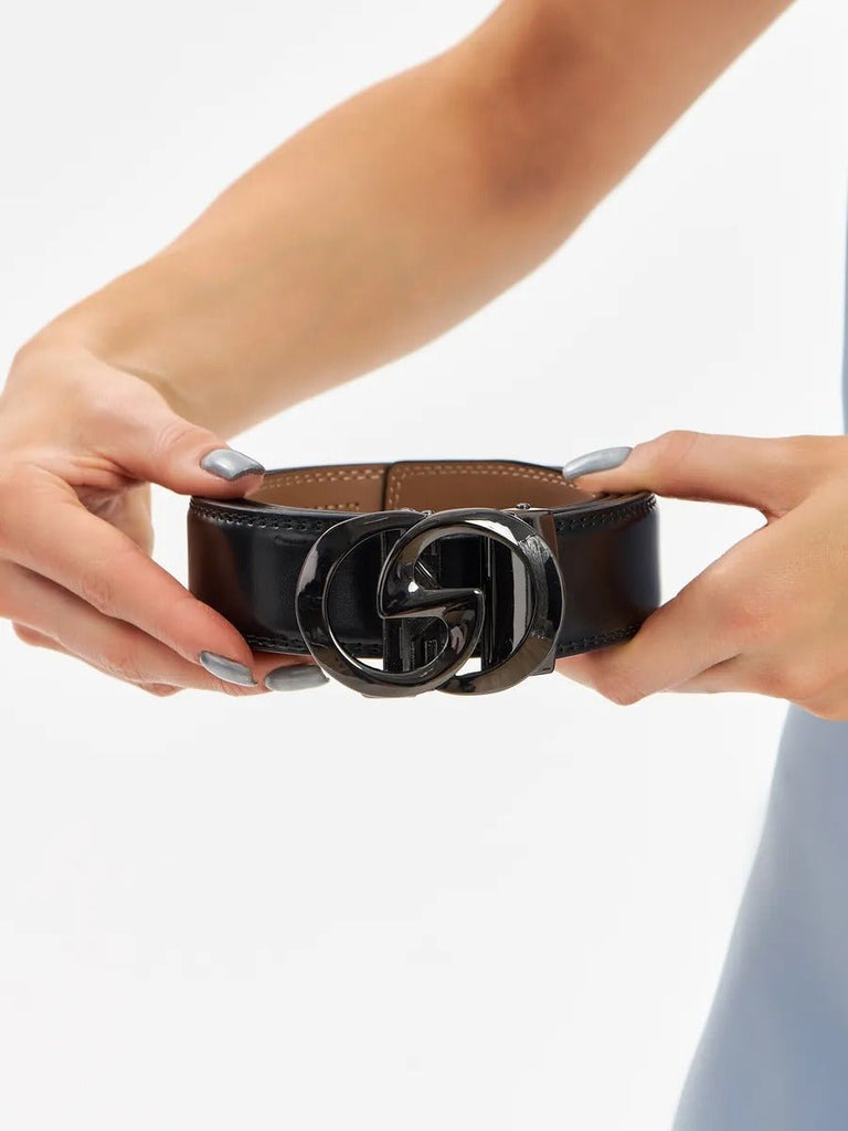 Ceinture en cuir femme, boucle automatique métal, boucle double G, largeur 3.5 cm, style classique moderne, modèle Gala - Ceinture - Noire S