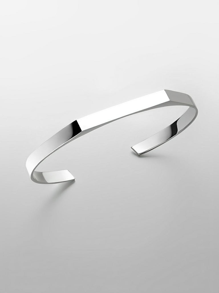 Conçu pour sublimer les poignets avec discrétion et caractère, ce bracelet rigide géométrique affiche une silhouette minimaliste et une ligne nette, inspirée des formes architecturales. Sa surface facettée et sa finition miroir captent la lumière pour un rendu éclatant, sans jamais en faire trop.