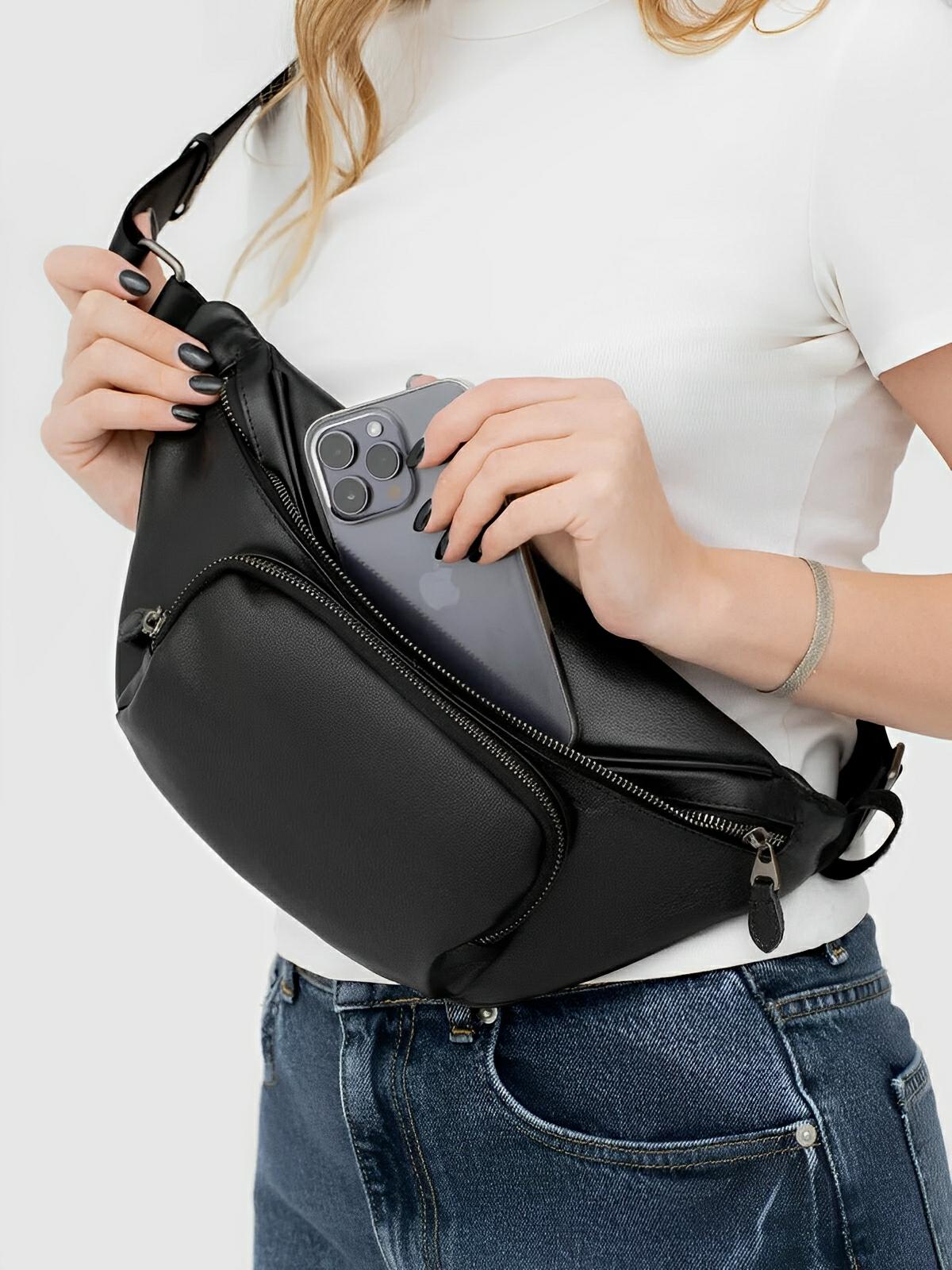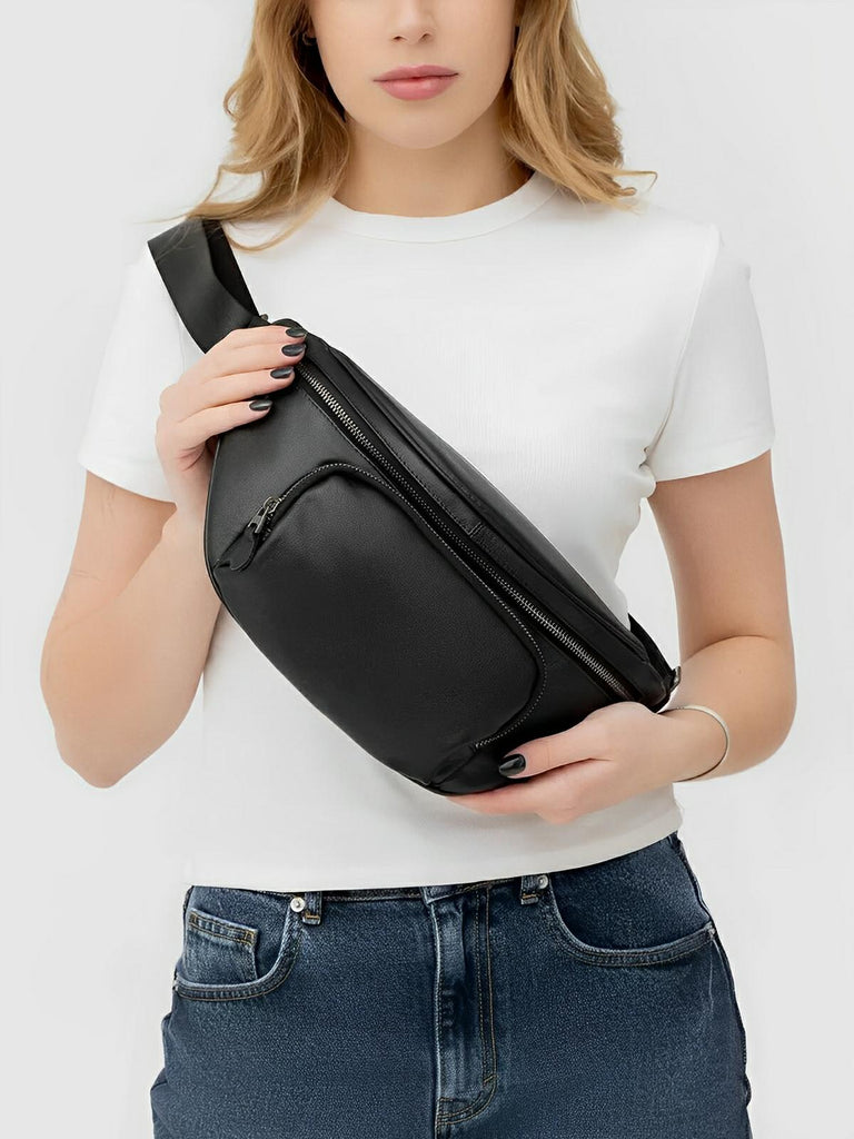 Sac banane en cuir mixte, multiple compartiments, poche sécurisée, au design urbain, modèle Eudoxe