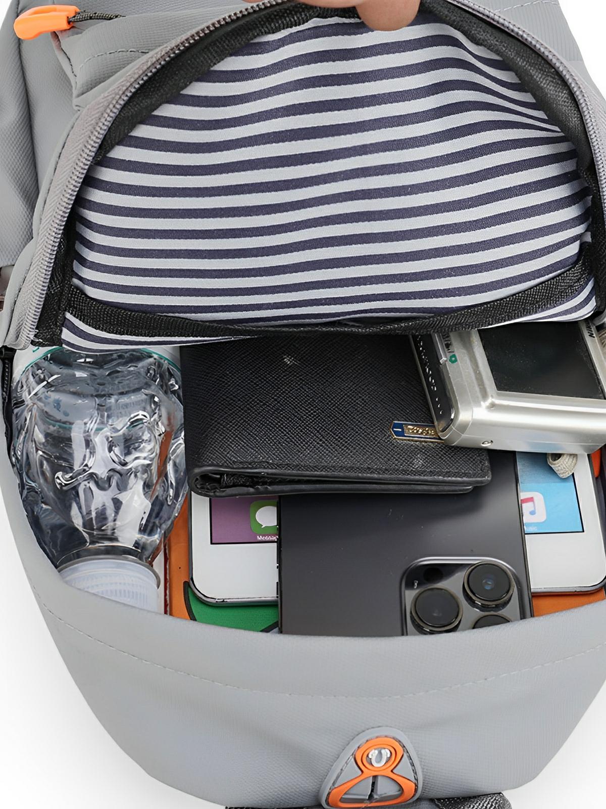 Sa poche dorsale sécurisée est parfaite pour ranger vos objets de valeur en toute discrétion. La bandoulière réglable assure un confort optimal et s’adapte à toutes les morphologies. Pour encore plus de praticité, un port USB intégré vous permet de recharger votre téléphone en déplacement, en connectant une batterie externe (non incluse).