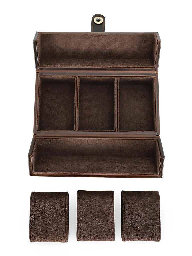Protégez et sublimez votre collection avec ce coffret à montres en cuir, conçu pour accueillir jusqu'à trois montres. Son design raffiné allie un extérieur en cuir pleine fleur et un intérieur en velours doux qui protège vos précieuses pièces des rayures et chocs.
