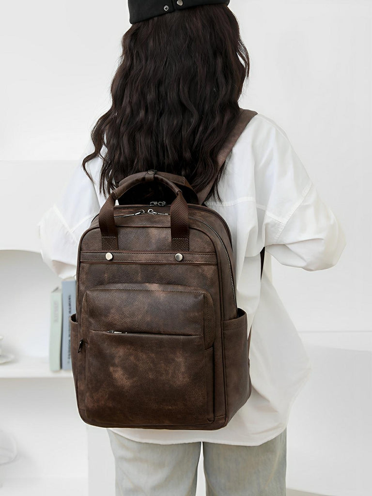 Sac à dos femme grande capacité, simili vegan, multifonctionnel, voyage, urbain, poches multiples, modèle Delphine