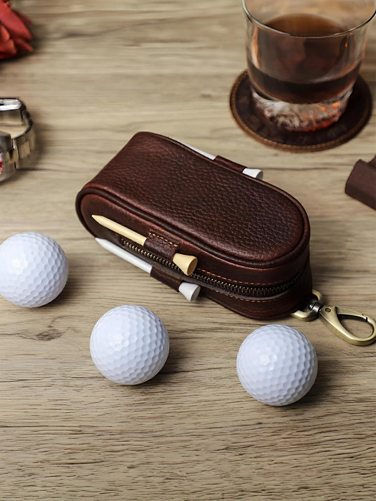 Étui pour balles de golf et tees, en cuir, transportable partout, modèle Ébrard
