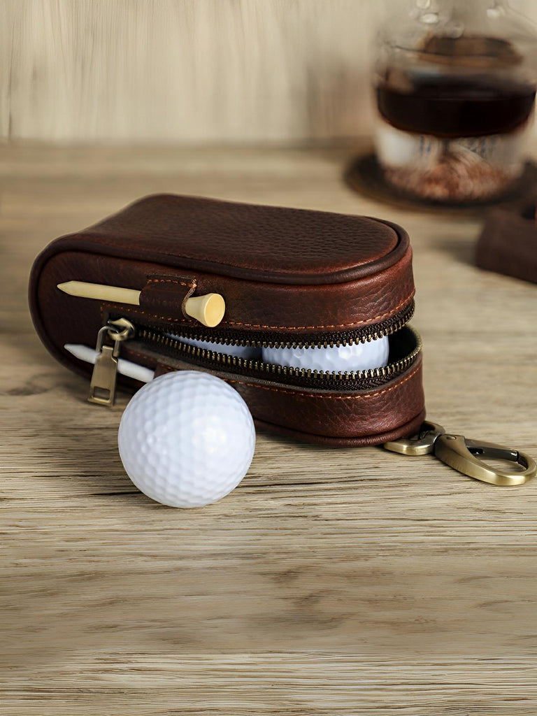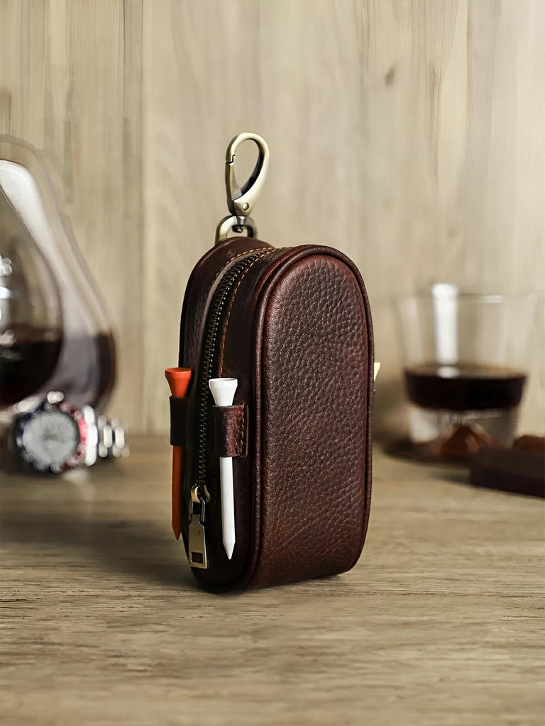 Sa fermeture éclair robuste assure une sécurité optimale de vos accessoires, tandis que son design en cuir pleine fleur confère une touche sophistiquée et durable. Son mousqueton métallique permet de l’accrocher facilement à votre sac de golf, votre ceinture ou votre chariot, garantissant une accessibilité rapide sur le parcours.