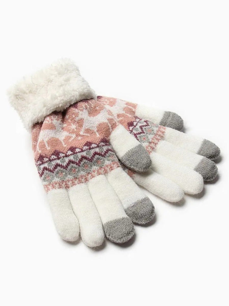 Gants d'hiver femme, gants tactiles et chauds, tricotés doublés, avec motifs renne, douillets hiver, modèle Emma