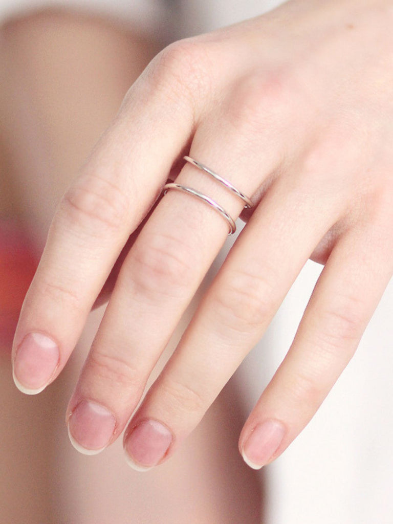 Bague ouverte double couche, acier inoxydable, design géométrique, style minimaliste, mode femme, modèle Lindsay