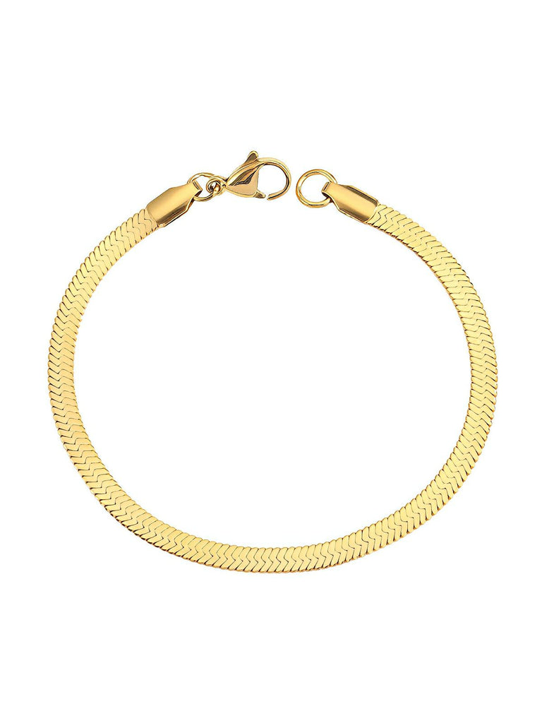 Bracelet chaîne plate snake, acier inoxydable, doré ou argenté, style minimaliste, 18 cm, modèle Luna
