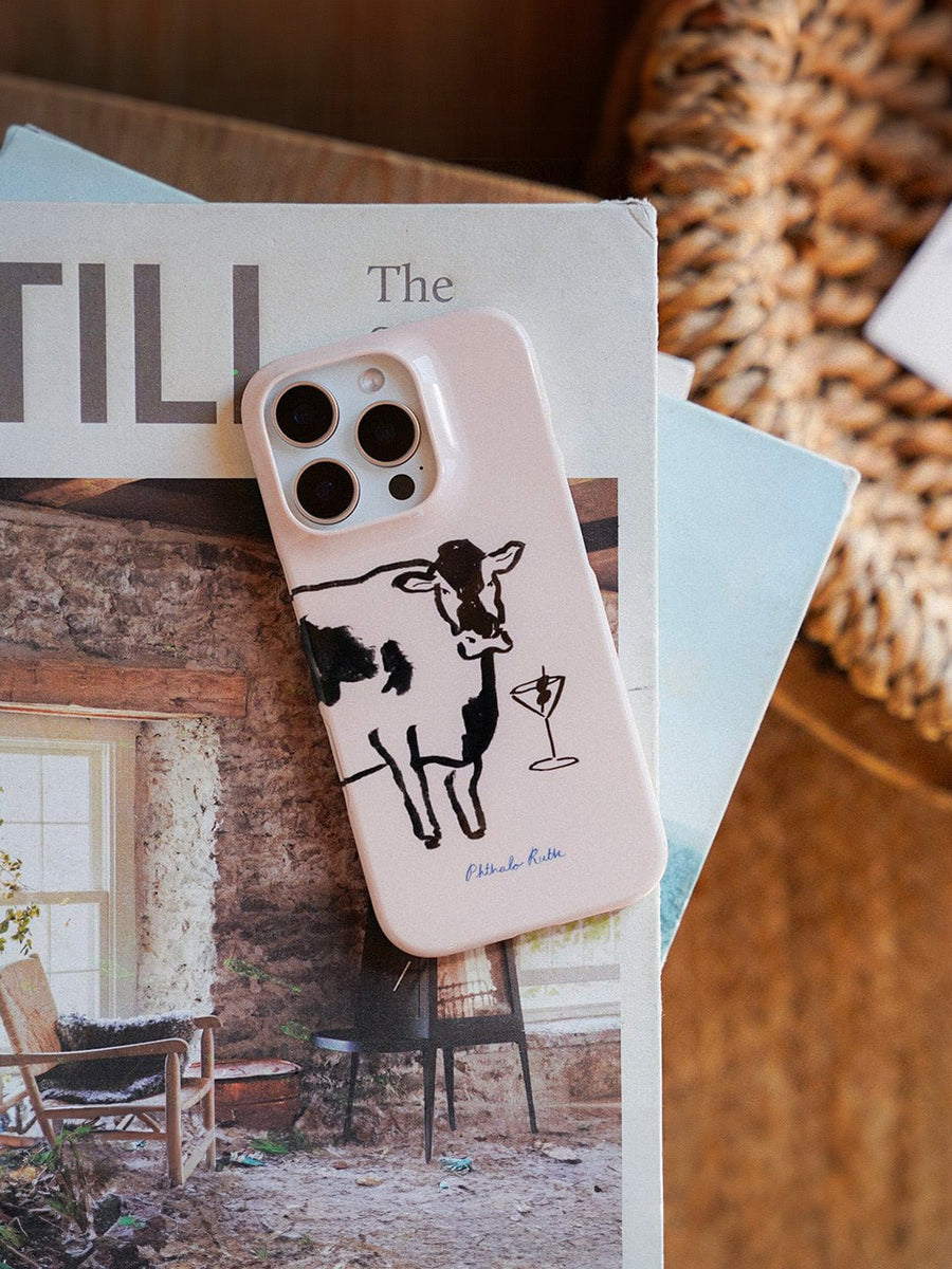 Coque iPhone vache cocktail, design original, protection anti-choc, finition brillante, compatible charge sans fil, modèle Margua