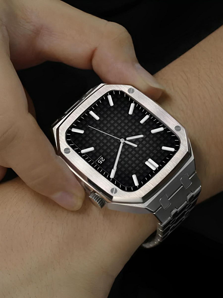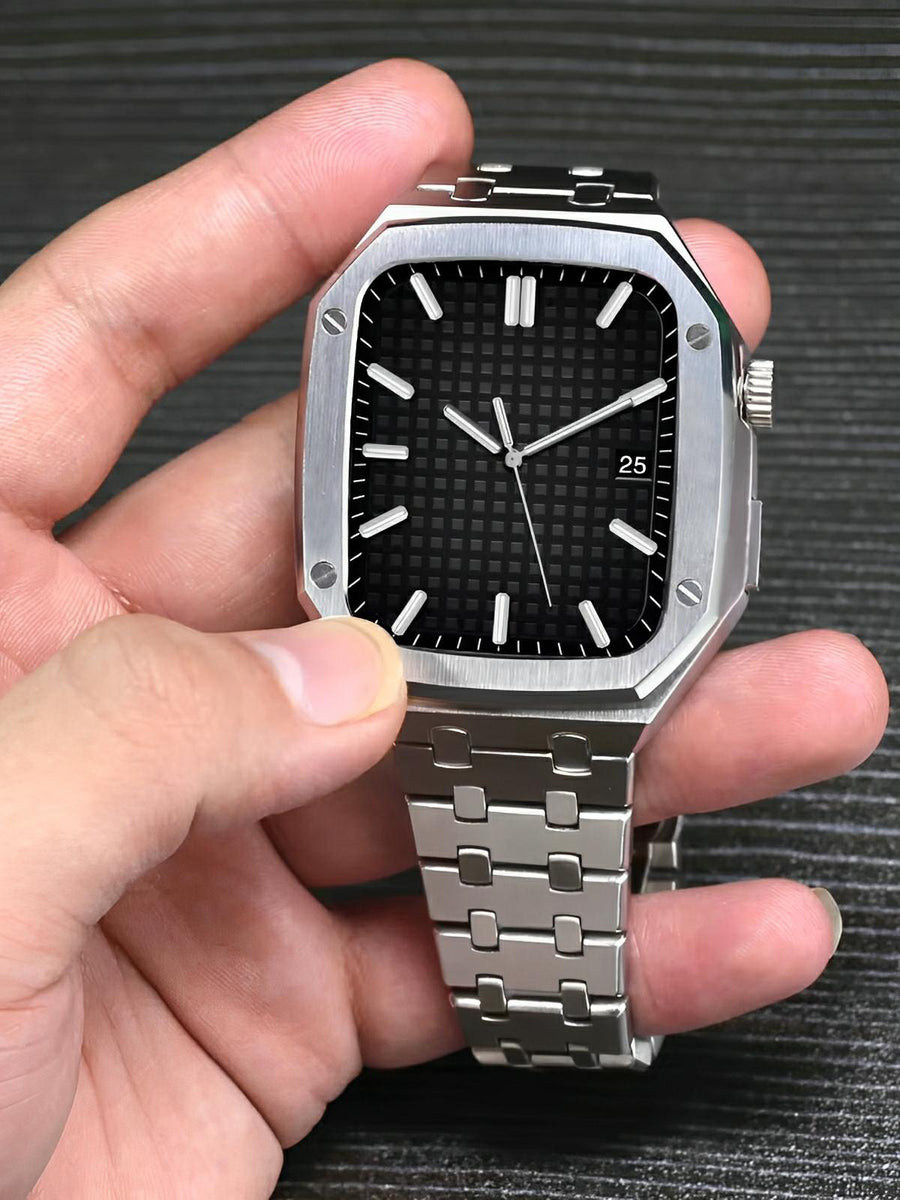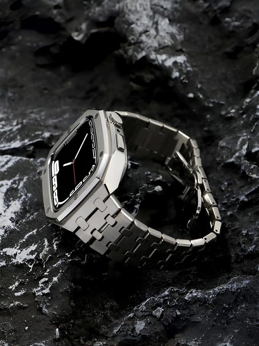 Offrite una nuova dimensione al vostro Apple Watch con questo cinturino in acciaio inossidabile dal design sofisticato. Progettato per valorizzare il vostro polso, questo cinturino si adatta perfettamente ai modelli Apple Watch SE, SE 2, Serie 7, 8 e 9 con quadranti da 40 mm, 41 mm, 44 mm e 45 mm.