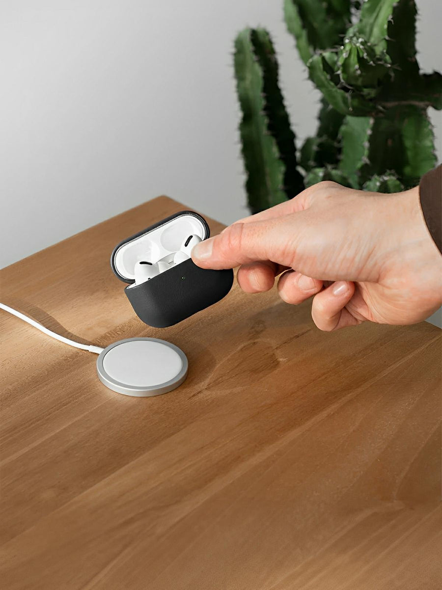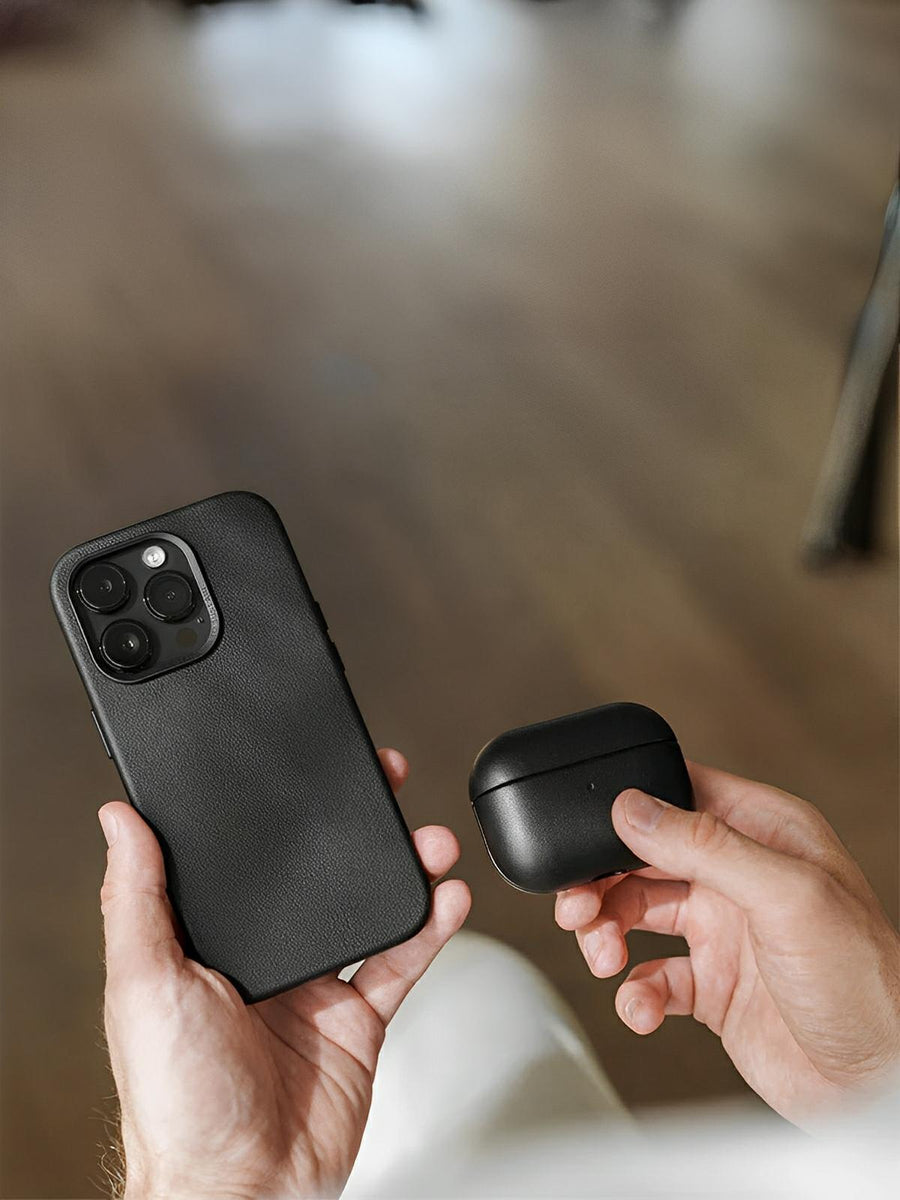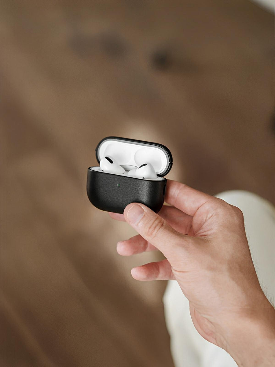 Offrite una protezione raffinata ai vostri AirPods Pro 1 & 2 con questa custodia in pelle. Progettata per unire estetica e praticità, si adatta perfettamente ai contorni della custodia mantenendo un formato compatto.