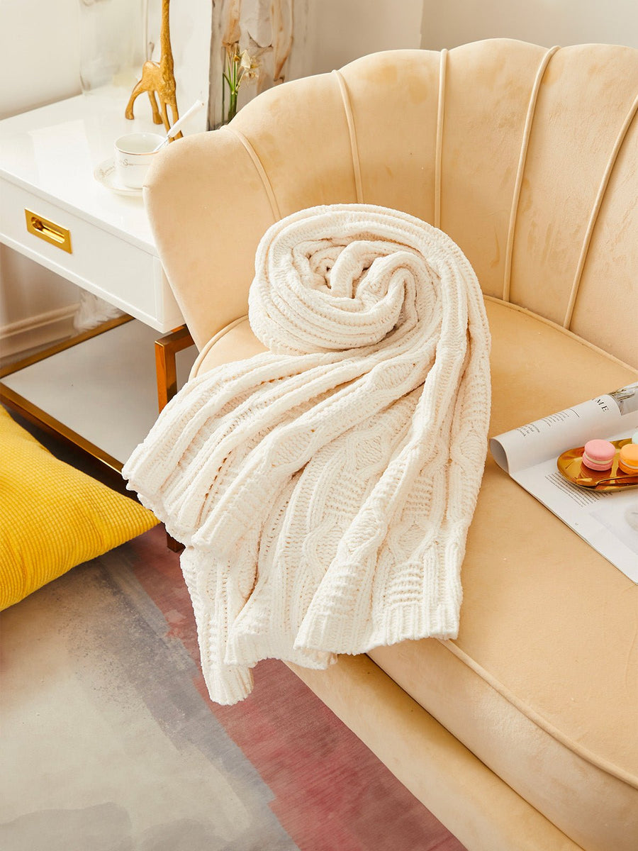 Plaid tricoté doux, coperta in cotone crema, coperta da divano accogliente, plaid nordico per la casa, coperta intrecciata calda, modello Aïko