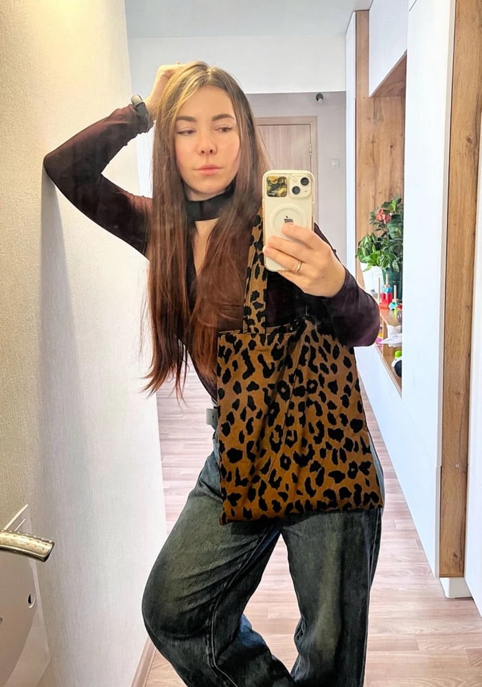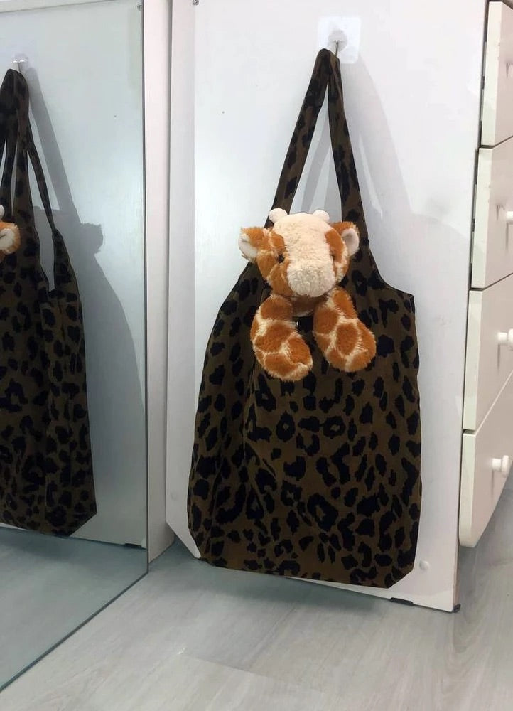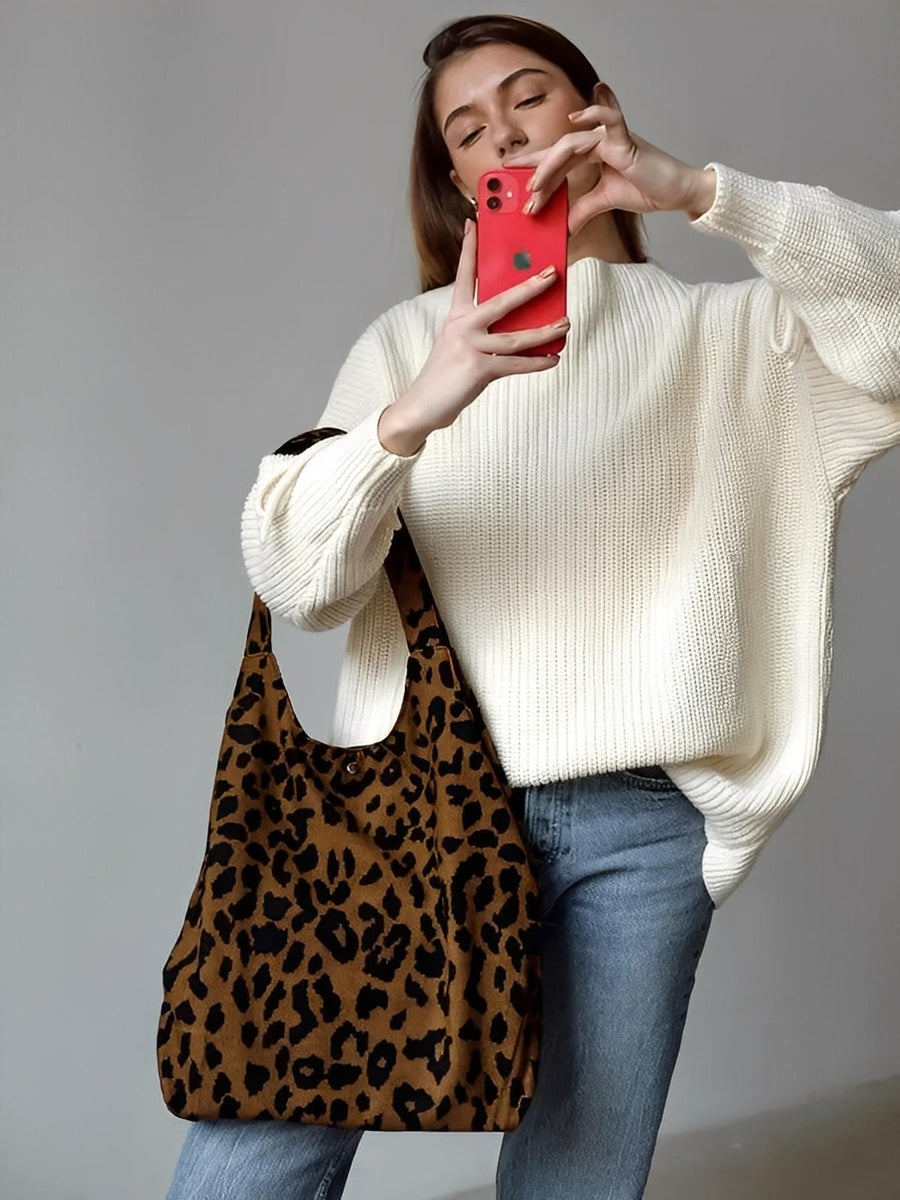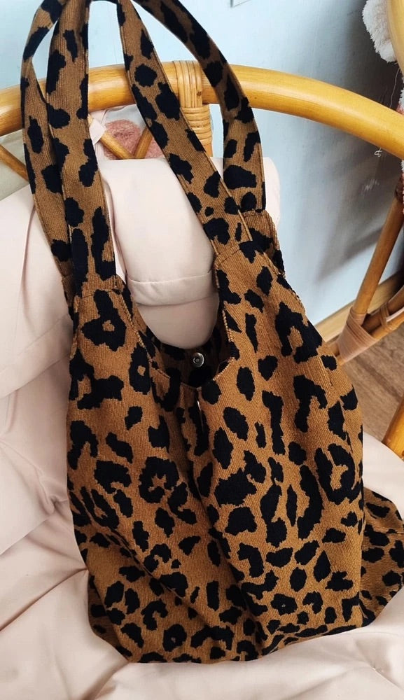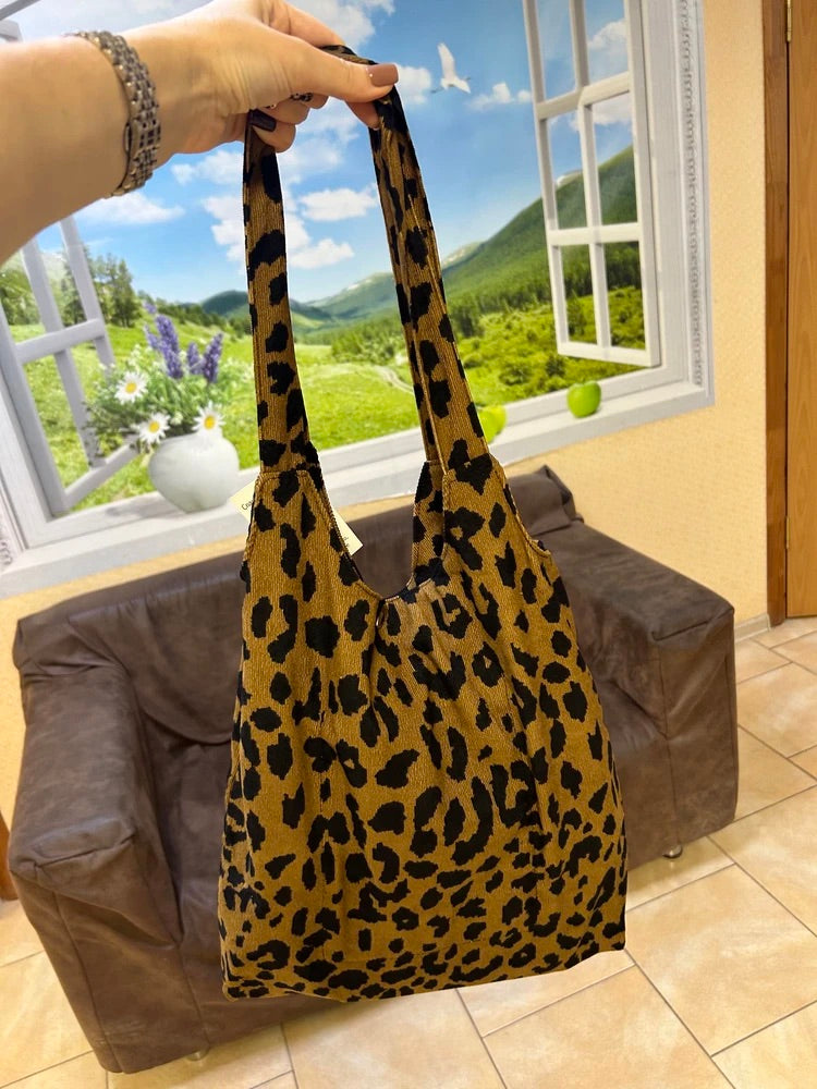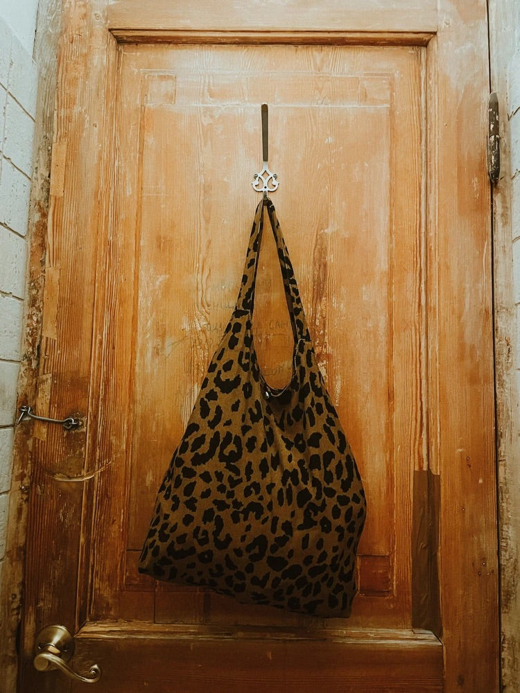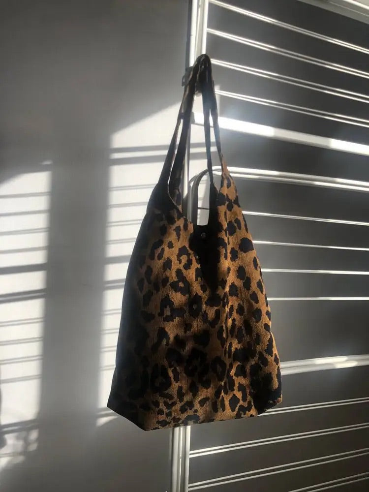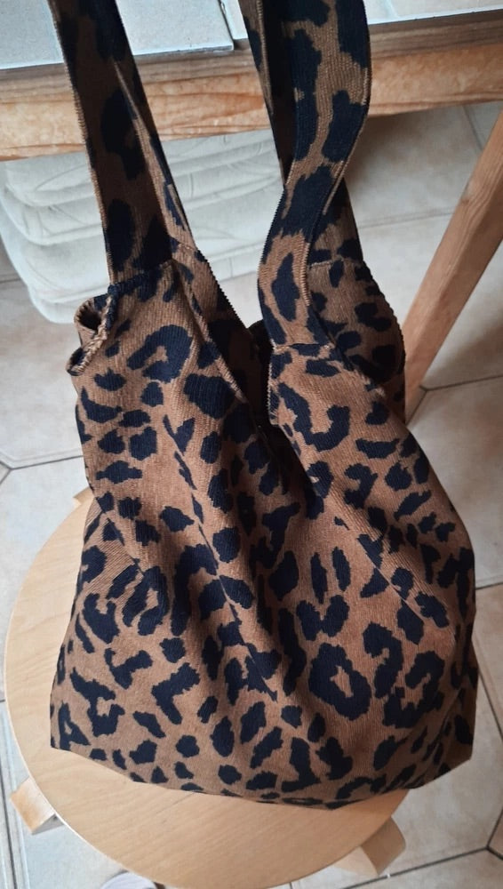 Tote-bag leopardato, borsa a spalla donna, borsa da spiaggia in velluto, borsa morbida e leggera, borsa stampata animalier, modello Aline