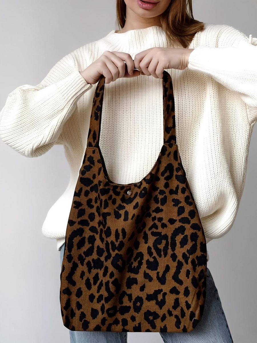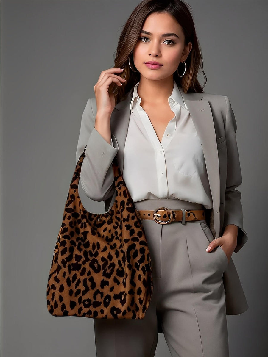 Questa borsa a spalla in velluto a coste con stampa leopardata si impone come l’accessorio perfetto per valorizzare i vostri outfit quotidiani. La sua texture morbida e la stampa animalier le conferiscono una presenza decisa senza sforzo.