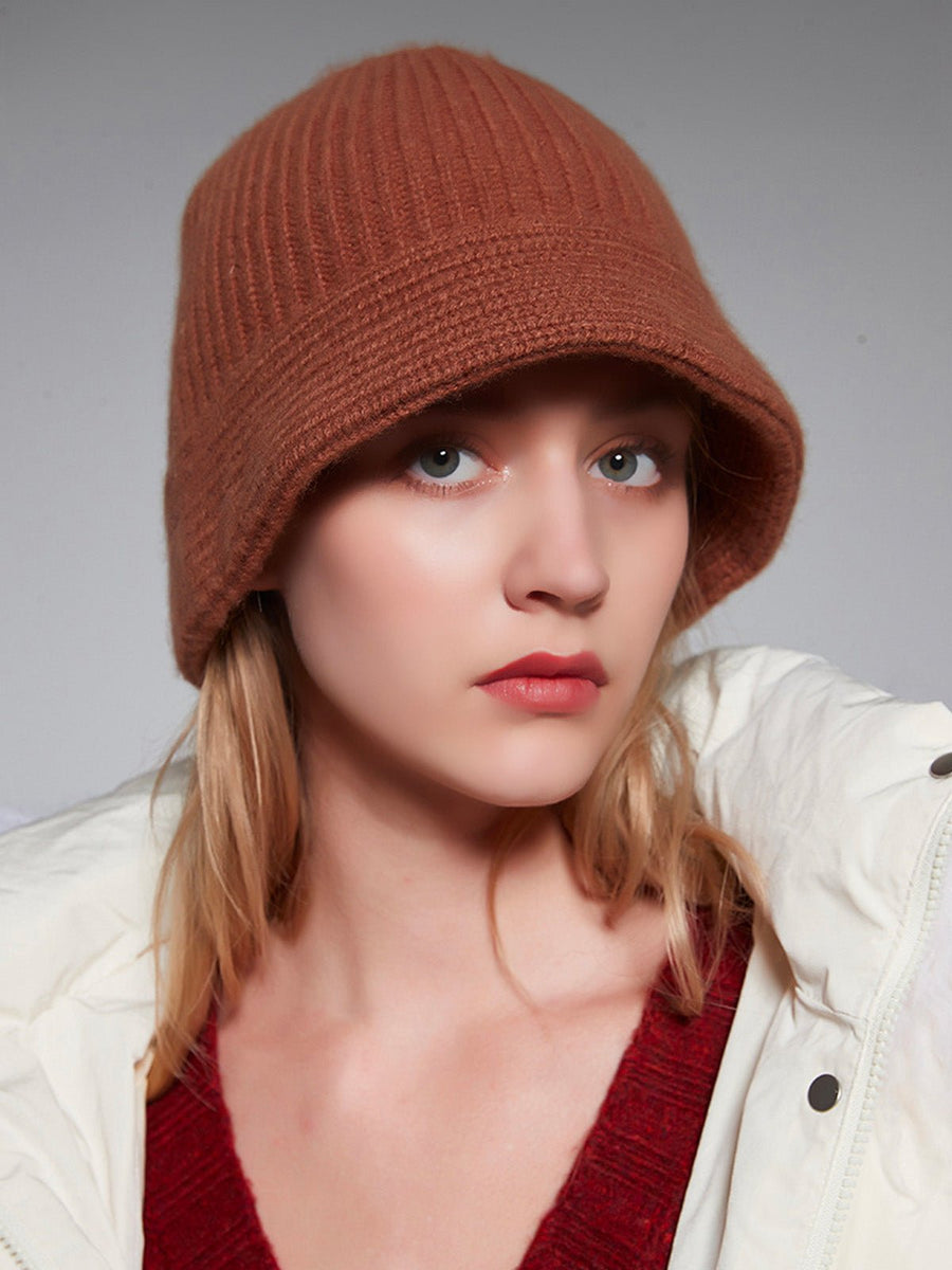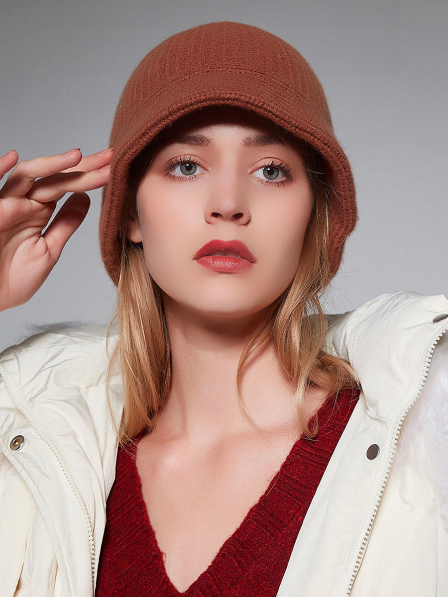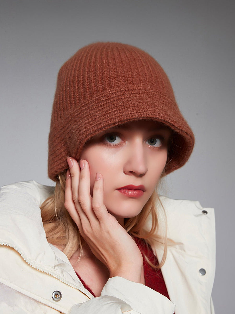 Berretto in pura lana da donna, forma cloche moderna, maglia a coste calda, stile casual chic, inverno morbido e confortevole, stile bob, modello Alix