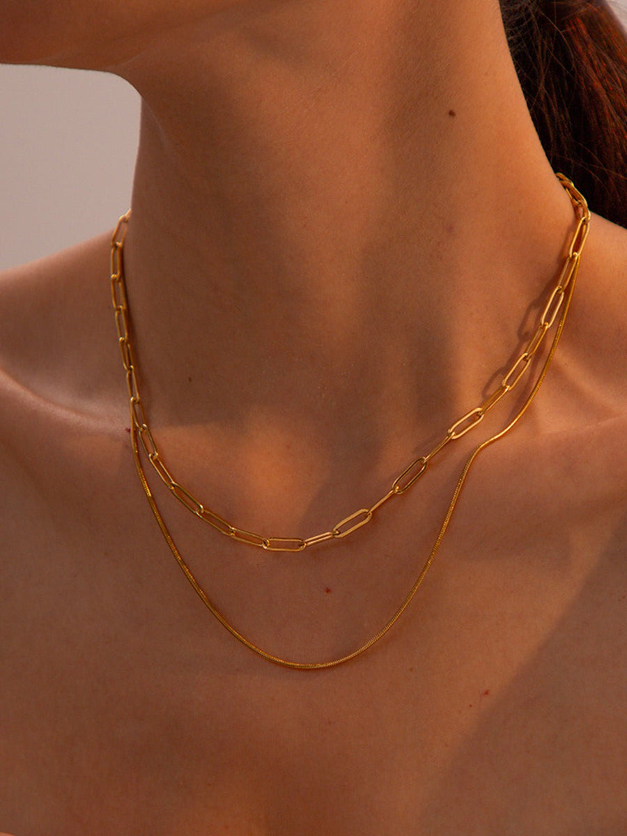 Collier doppio giro, catena rettangolare forzatina e maglia serpente, acciaio inossidabile, dorato, modello Aluli