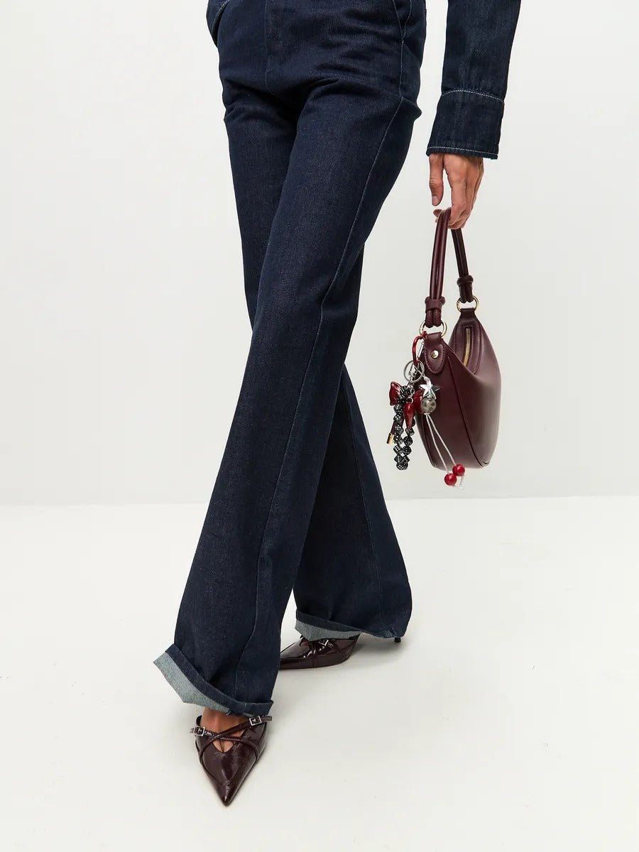 Il moschettone a forma di cuore, al tempo stesso funzionale e decorativo, consente di fissare facilmente il bijou a una borsa, a un portachiavi o anche a un astuccio. Ogni elemento apporta il suo tocco personale: la perla effetto marmorizzato, la stella argentata a pois, le perle ciliegia e il cordoncino intrecciato creano un mix di texture unico.