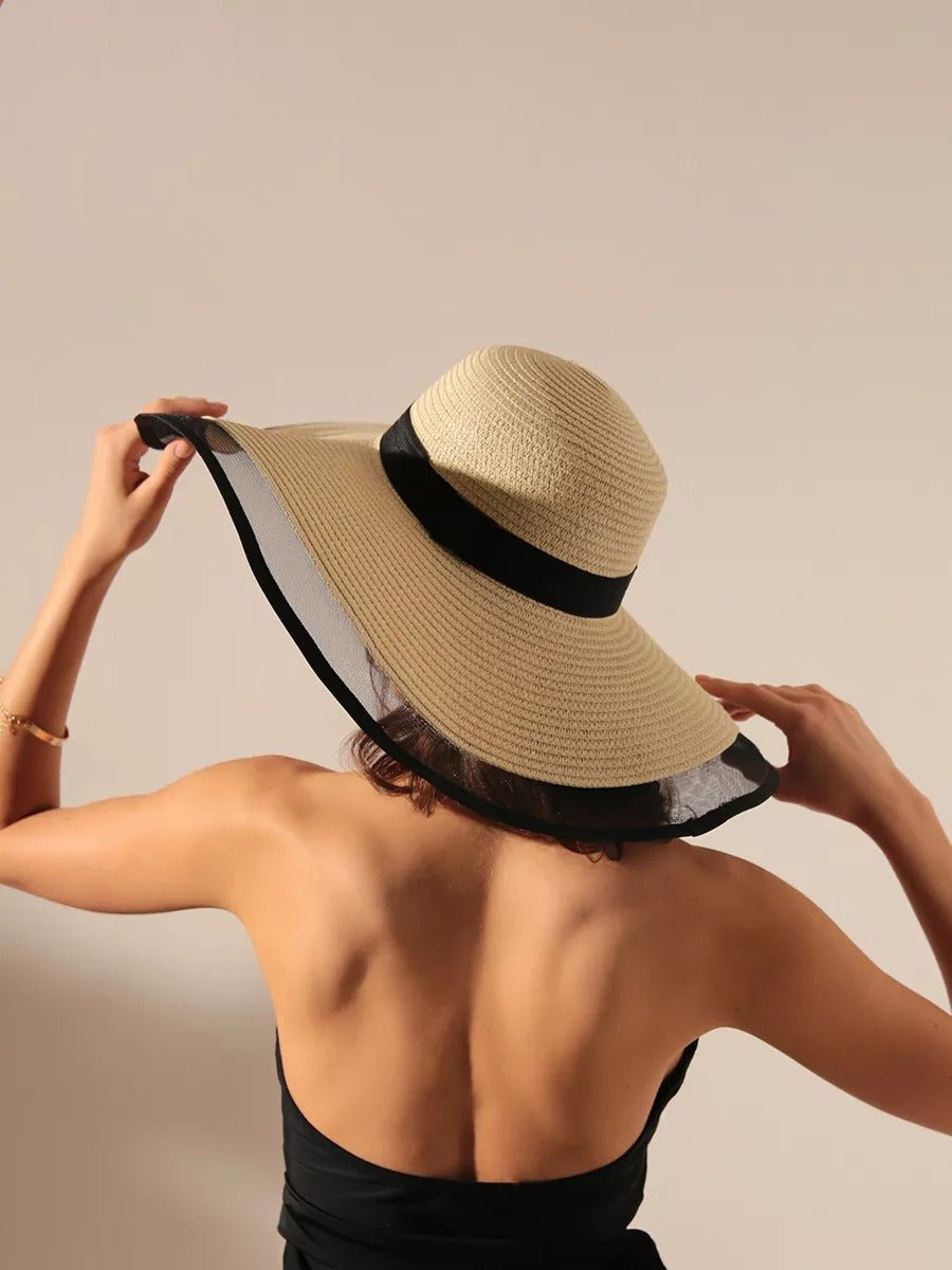La sua ampia tesa di 12 cm, valorizzata da un bordo in tulle nero semi-trasparente, assicura una protezione solare ottimale aggiungendo un tocco di stile deciso. Ideale per le giornate soleggiate, questo cappello vi protegge efficacemente dai raggi solari lasciando circolare l’aria per un comfort perfetto.