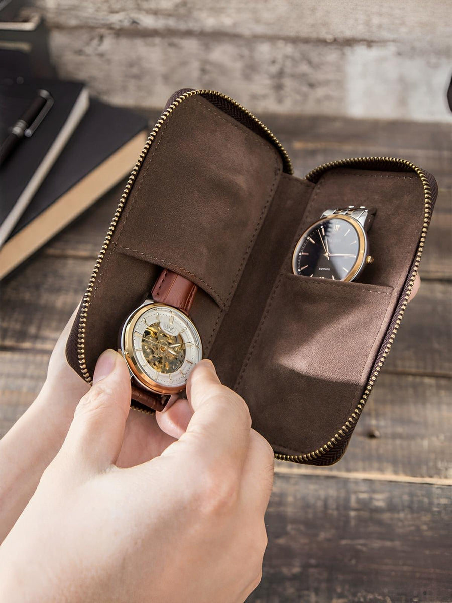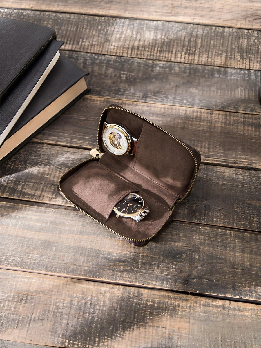 Custodia per orologi in pelle, doppio scomparto, modello Ansel