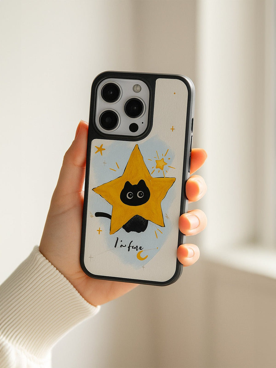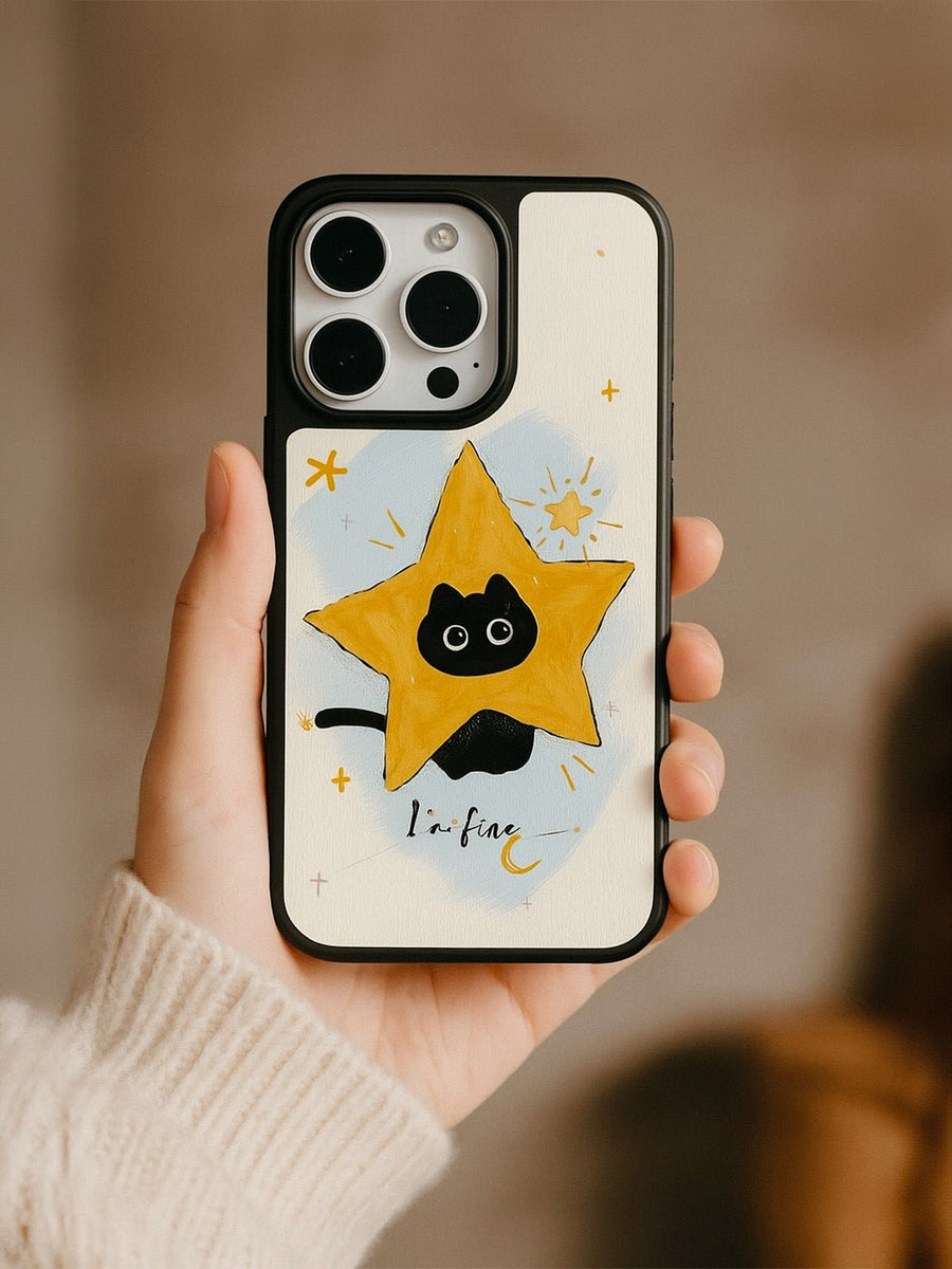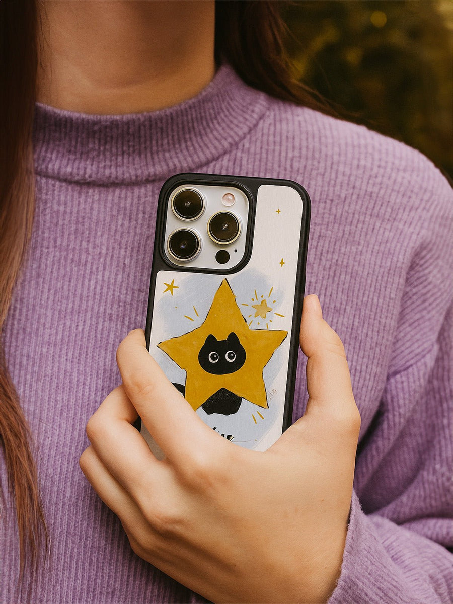 Scoprite questa cover protettiva progettata appositamente per valorizzare e proteggere il vostro iPhone. Con il suo motivo unico di gatto nero su stella gialla, aggiunge un tocco giocoso e originale alla vostra quotidianità.