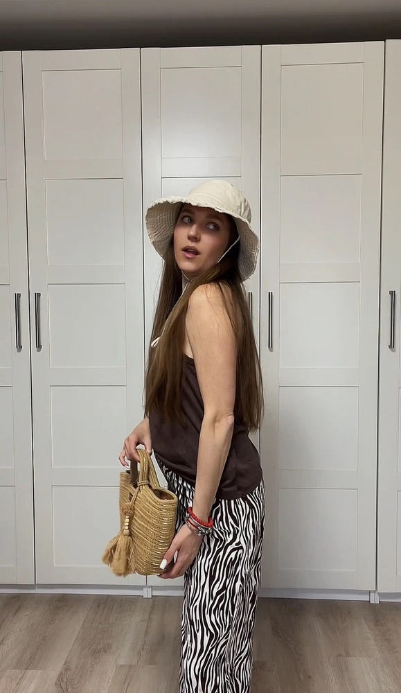Adottate un accessorio indispensabile per la bella stagione con questo cappello bucket a tesa larga, pensato per coniugare stile e praticità. Realizzato in 100% cotone morbido, offre una piacevole sensazione sulla pelle e una perfetta traspirabilità, anche nelle giornate più calde.