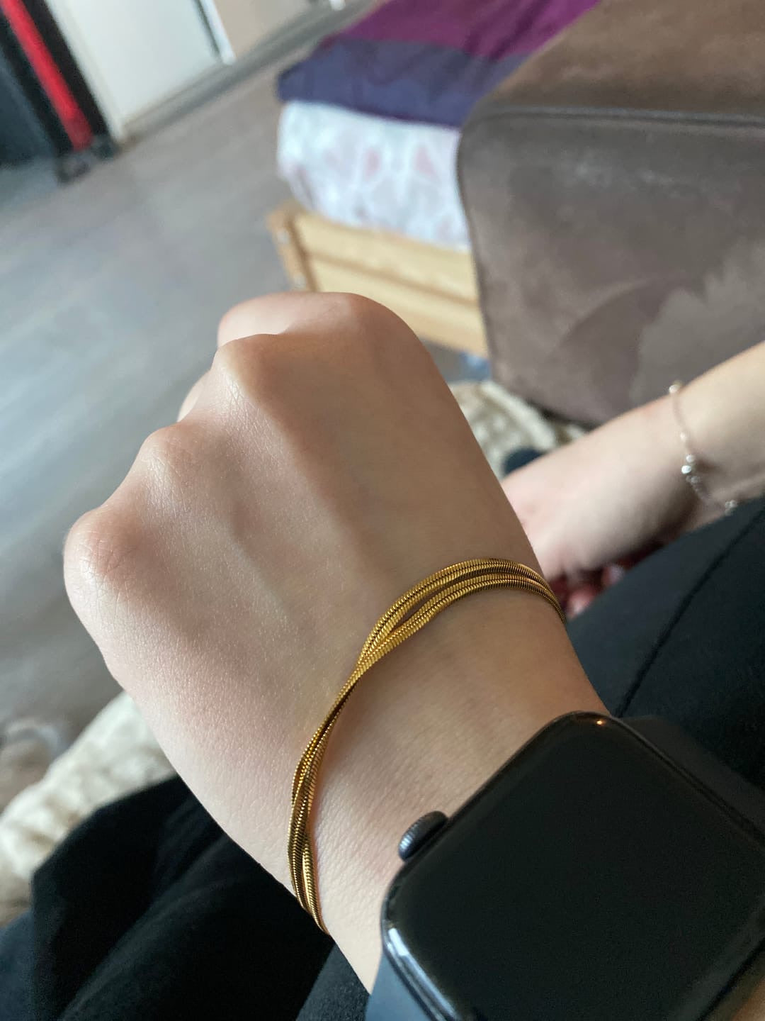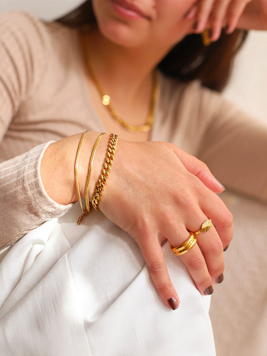 Bracelet femme dorato, doppia catena maglia serpente, in titanio placcato oro, stile spina di pesce, regolabile, modello Arline