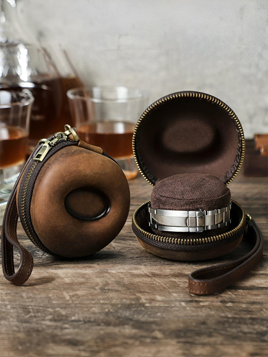 Coffret porta orologi, in pelle, forma arrotondata, modello Armandin