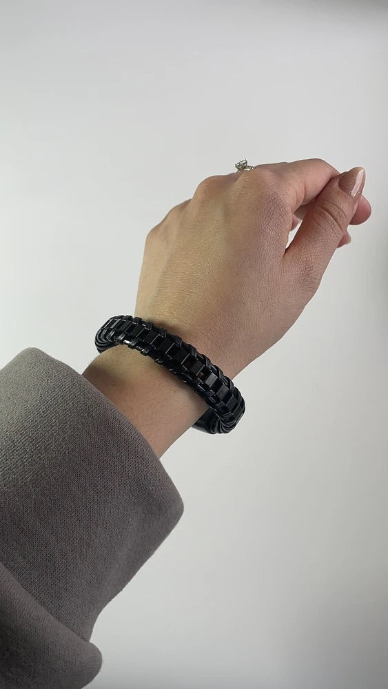 Disponibile in diverse finiture – Nero, Nero e argento, Nero e oro – si adatta a tutti gli stili e le preferenze. Questo gioiello è al tempo stesso elegante e resistente, pensato per accompagnarvi ogni giorno senza alterarsi.