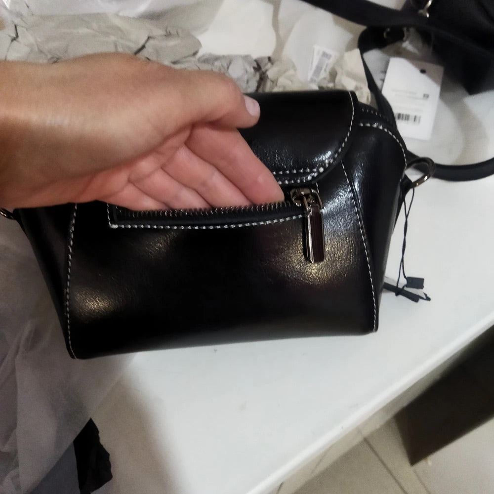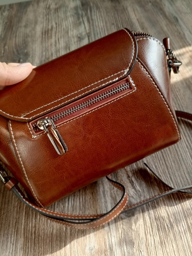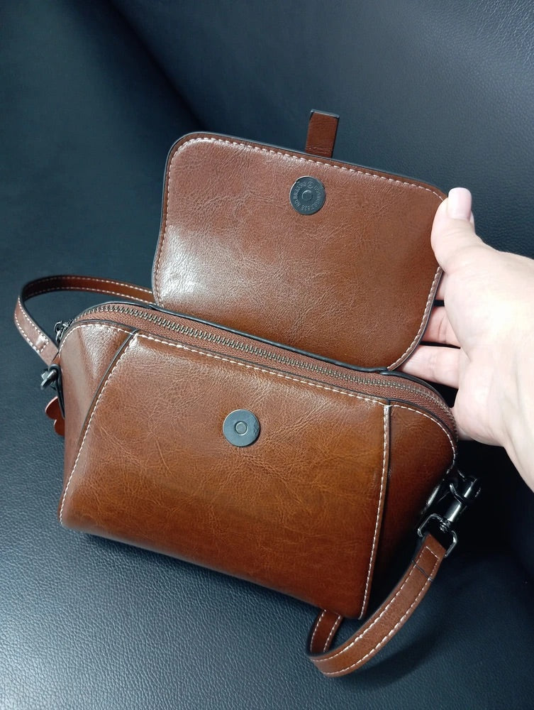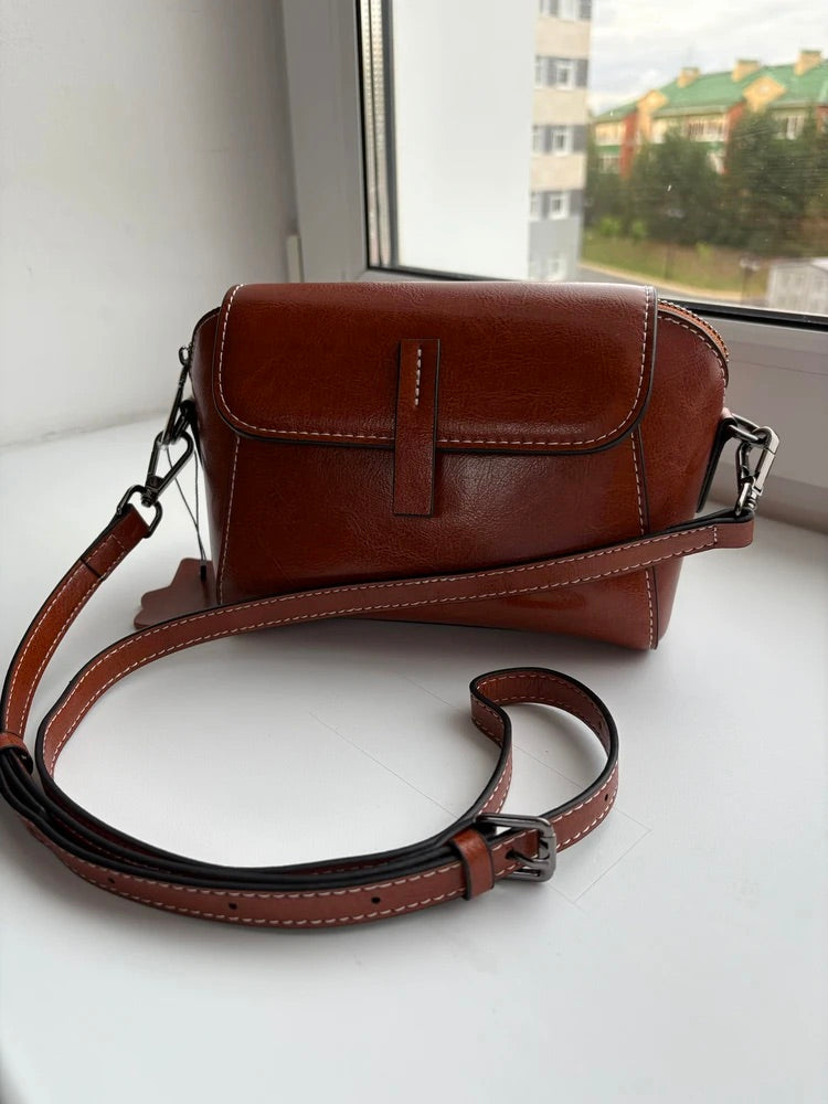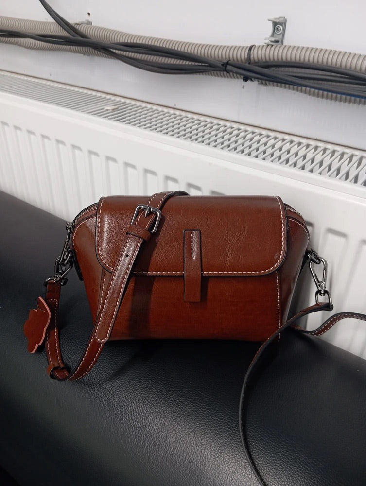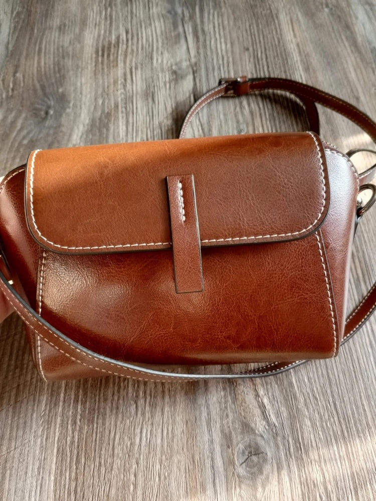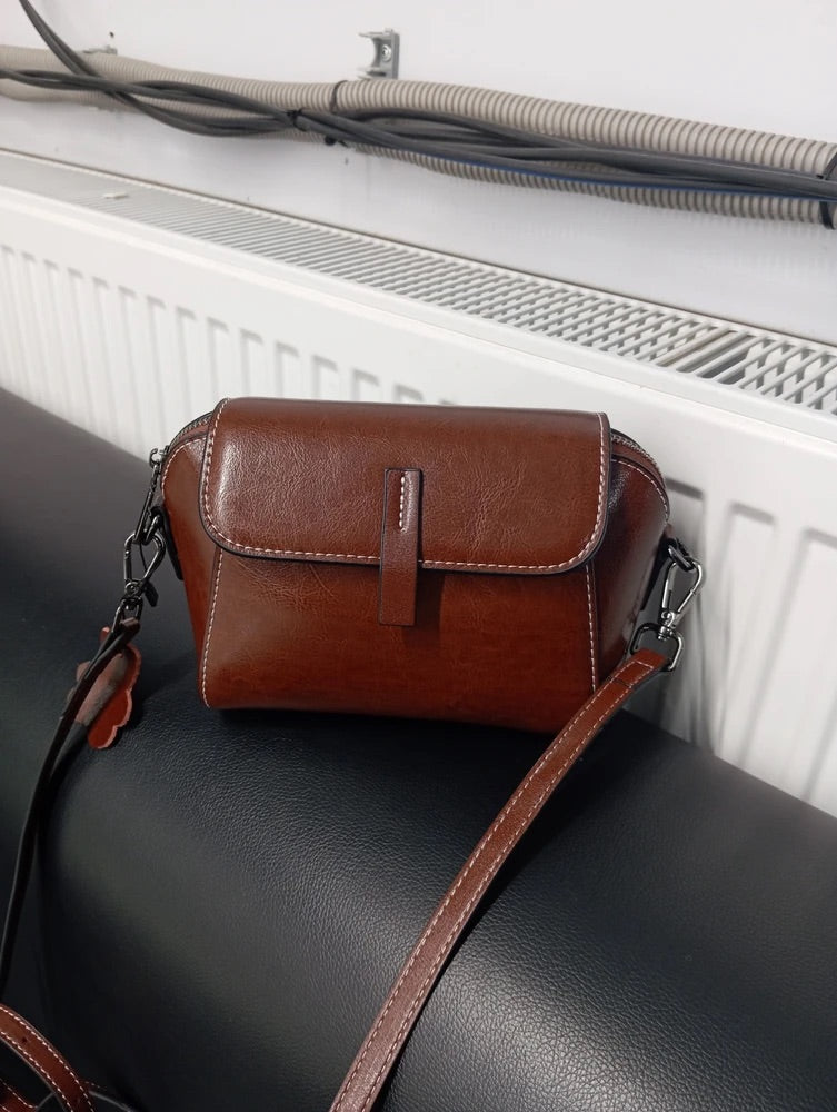 Borsa a tracolla da donna in pelle, piccola borsa rigida, formato rettangolare, scomparti multipli, modello Azeline