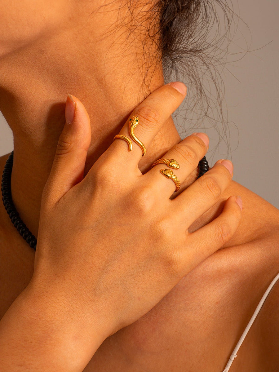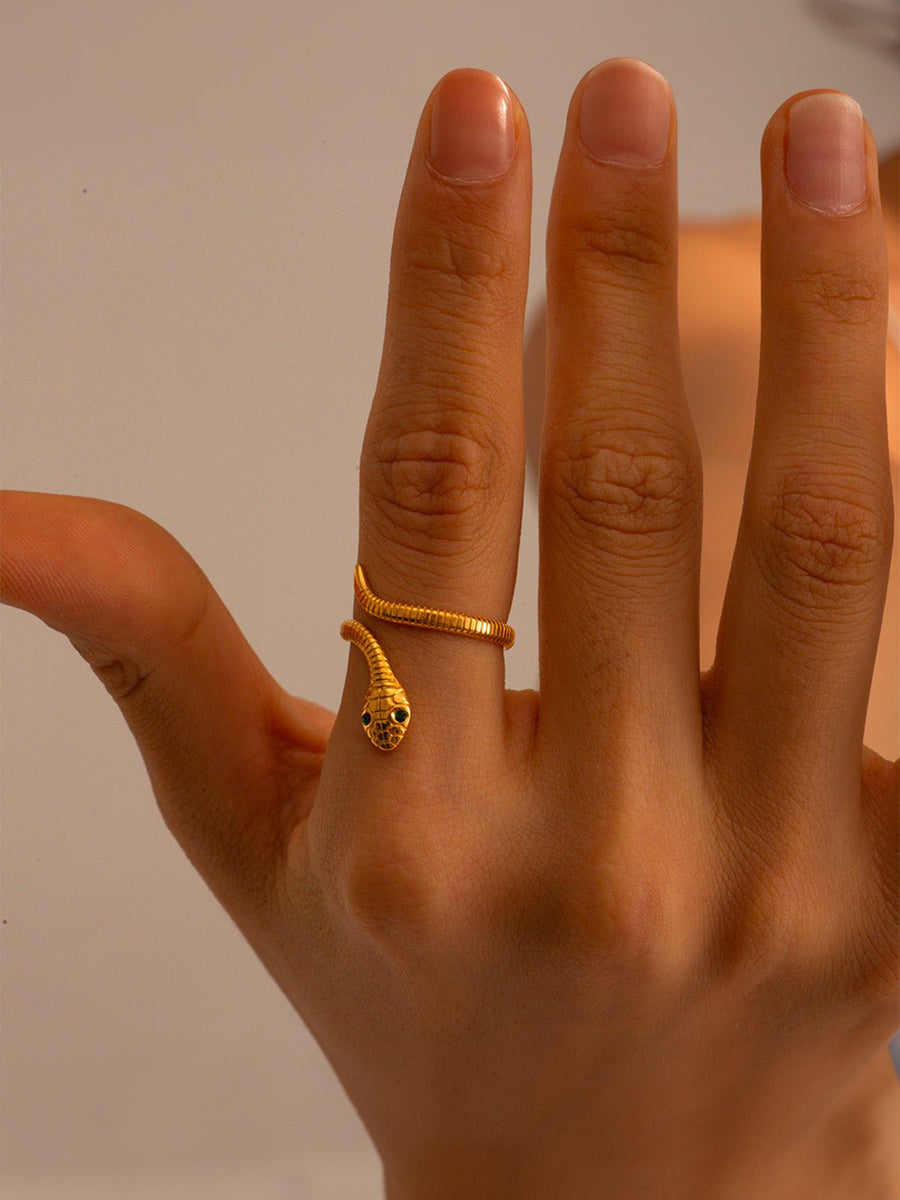 Anello serpente, anello aperto, anello regolabile, dorato, occhi verdi, modello Dina