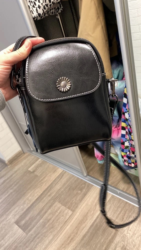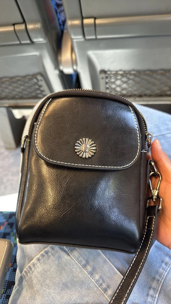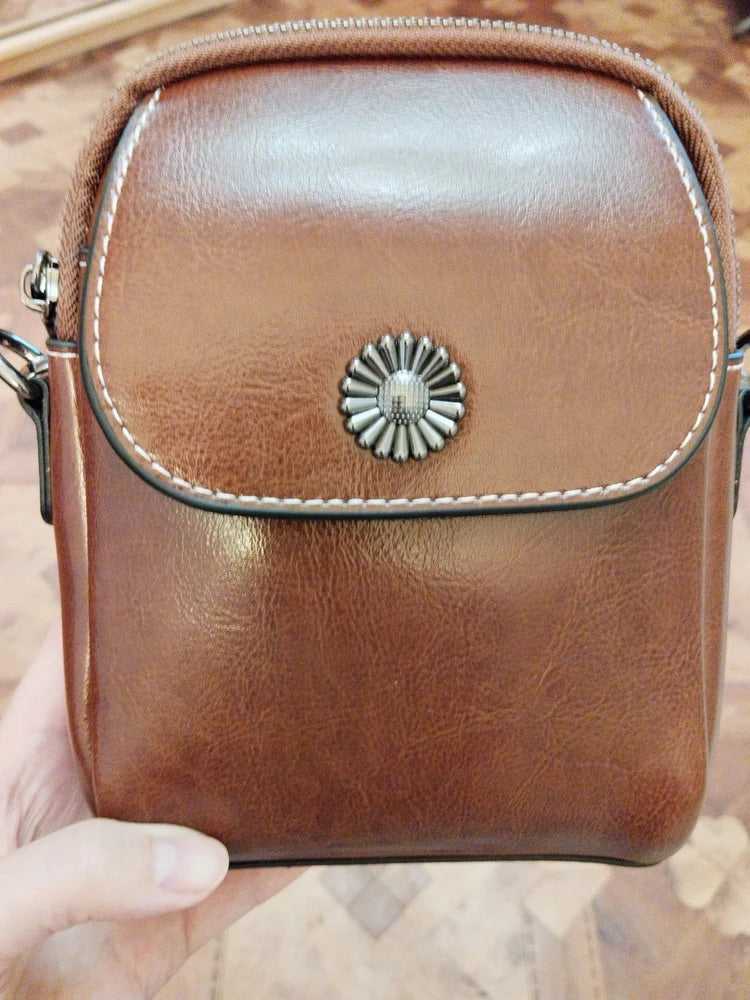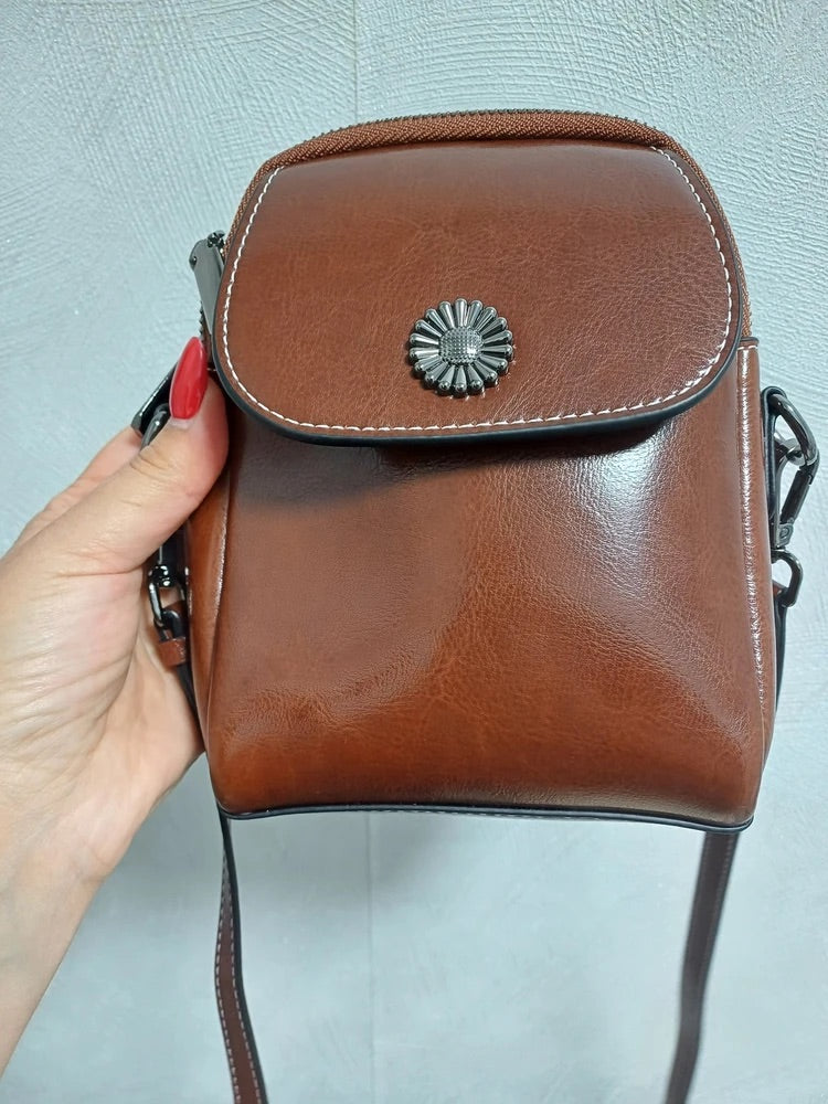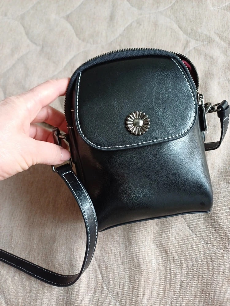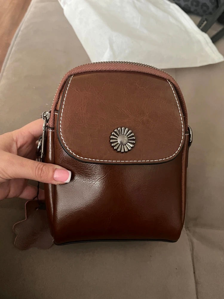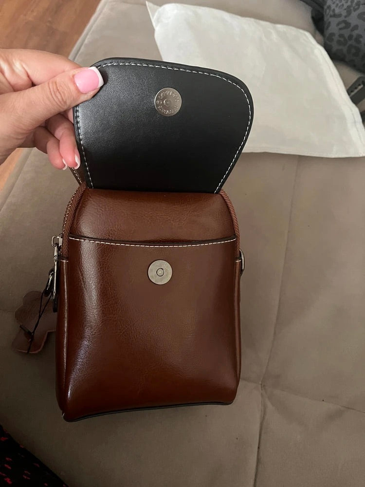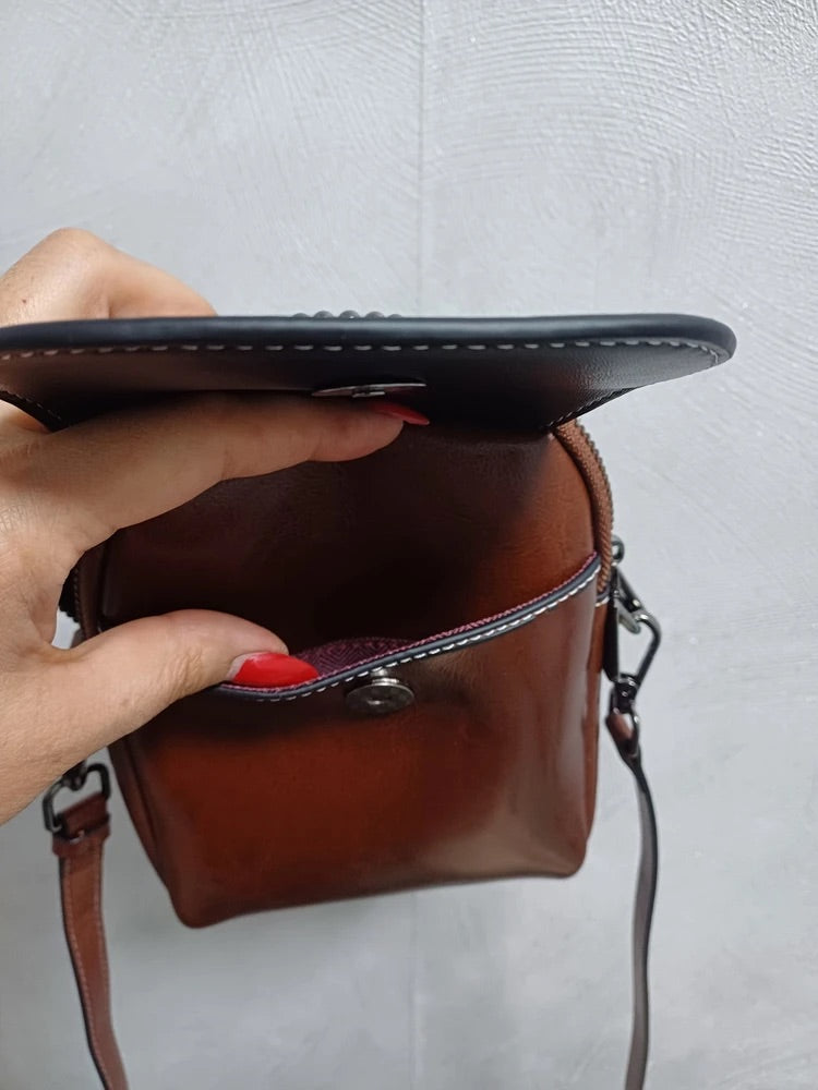 Borsa a tracolla in pelle, borsa compatta da spalla, borsa porta telefono magnetica, piccola borsa con zip da donna, accessorio moda pratico, modello Barbel