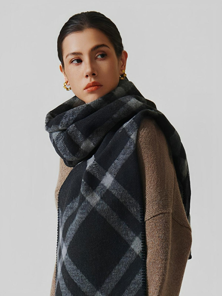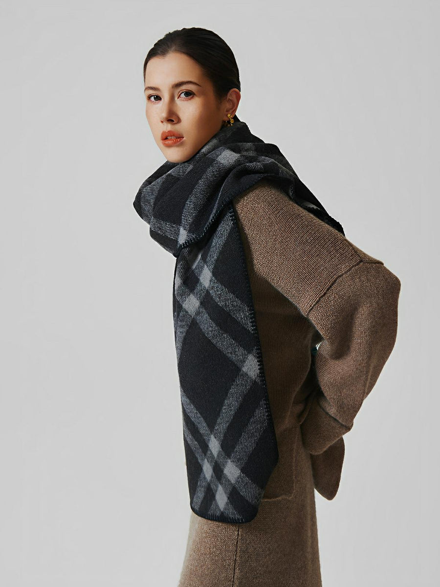 I quadri a contrasto le conferiscono un’eleganza grafica senza tempo, perfetta per ravvivare un cappotto classico. Ogni pezzo è rifinito con cura con un bordo orlato discreto per una maggiore durata. Progettata per la stagione fredda, sarà la vostra alleata indispensabile dall’autunno fino al cuore dell’inverno.