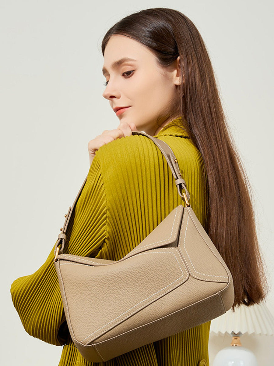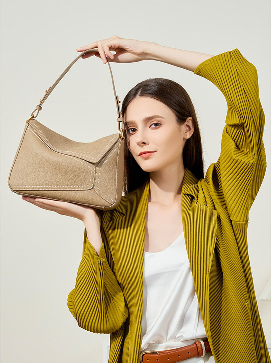 Le finiture metalliche dorate e la fodera in tessuto beige chiaro donano un tocco discreto e raffinato. Disponibile in grigio, marrone o cioccolato, questa borsa saprà completare ogni vostro outfit, dal più casual al più elegante. Il perfetto equilibrio tra stile urbano e funzionalità.
