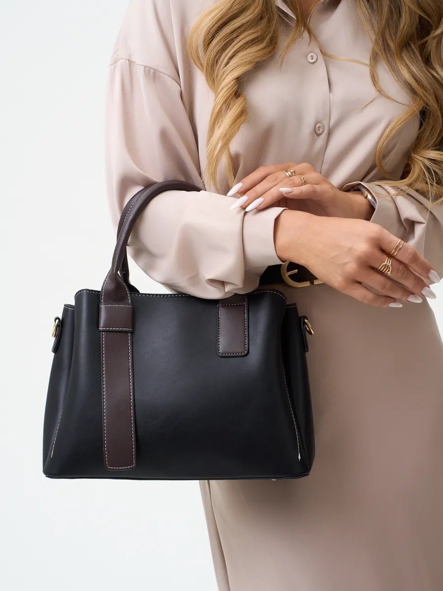 Questa borsa da donna in similpelle conquista per il suo design moderno e le sue finiture a contrasto. Con la sua struttura morbida ma ben sostenuta, offre un’eleganza raffinata restando funzionale nella vita quotidiana.