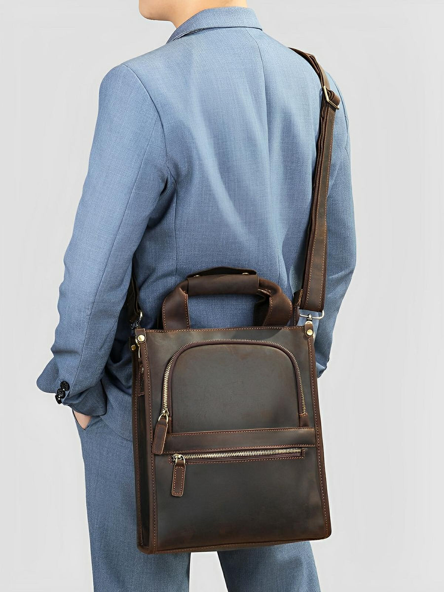 Scoprite questa borsa a tracolla in vera pelle pensata per soddisfare le esigenze dei professionisti e degli amanti dello stile vintage. Realizzata in pelle pieno fiore, questa borsa unisce robustezza ed eleganza per accompagnare i vostri spostamenti quotidiani. Dotata di molteplici scomparti, offre un'organizzazione ottimale per i vostri oggetti essenziali.