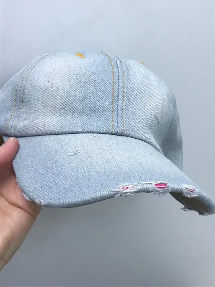 Casquette in denim délavé, baseball unisex, denim regolabile, effetto usato stile vintage, modello Bill