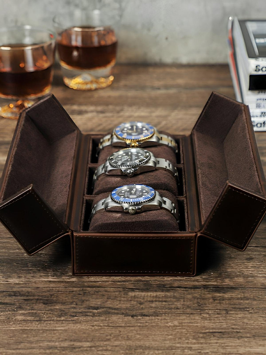 Coffret porta orologi in pelle, tripla capacità, modello Candide