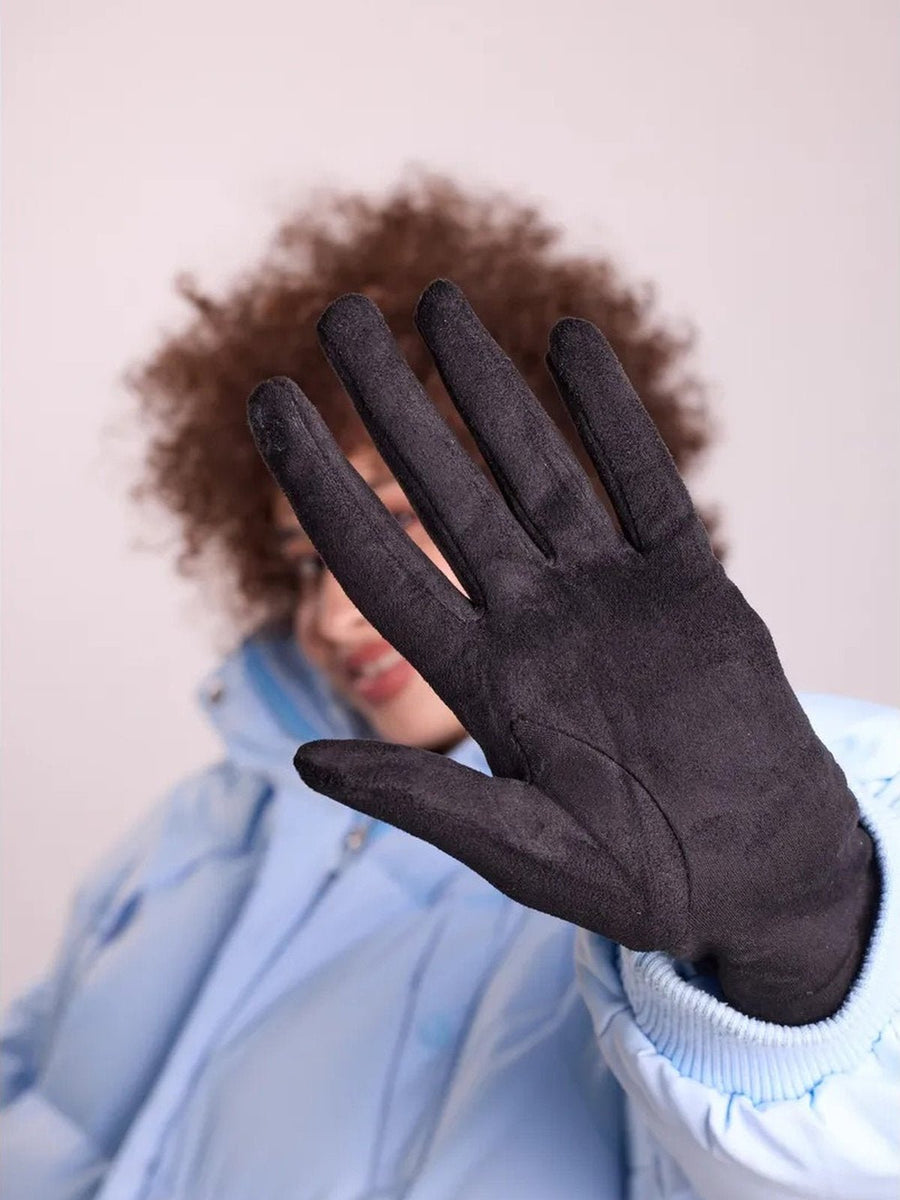 Guanti invernali da donna touch screen, caldi e impermeabili, con fodera in pile e finitura in velluto, modello Carlotta