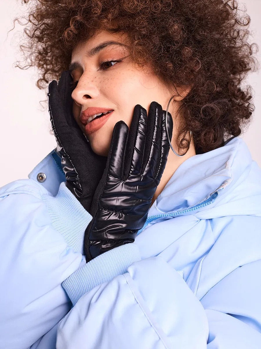 La parte esterna in tessuto impermeabile trapuntato protegge efficacemente dall’umidità, mentre l’interno è interamente foderato in morbido pile, mantenendo le vostre mani ben calde anche nelle giornate più fredde.