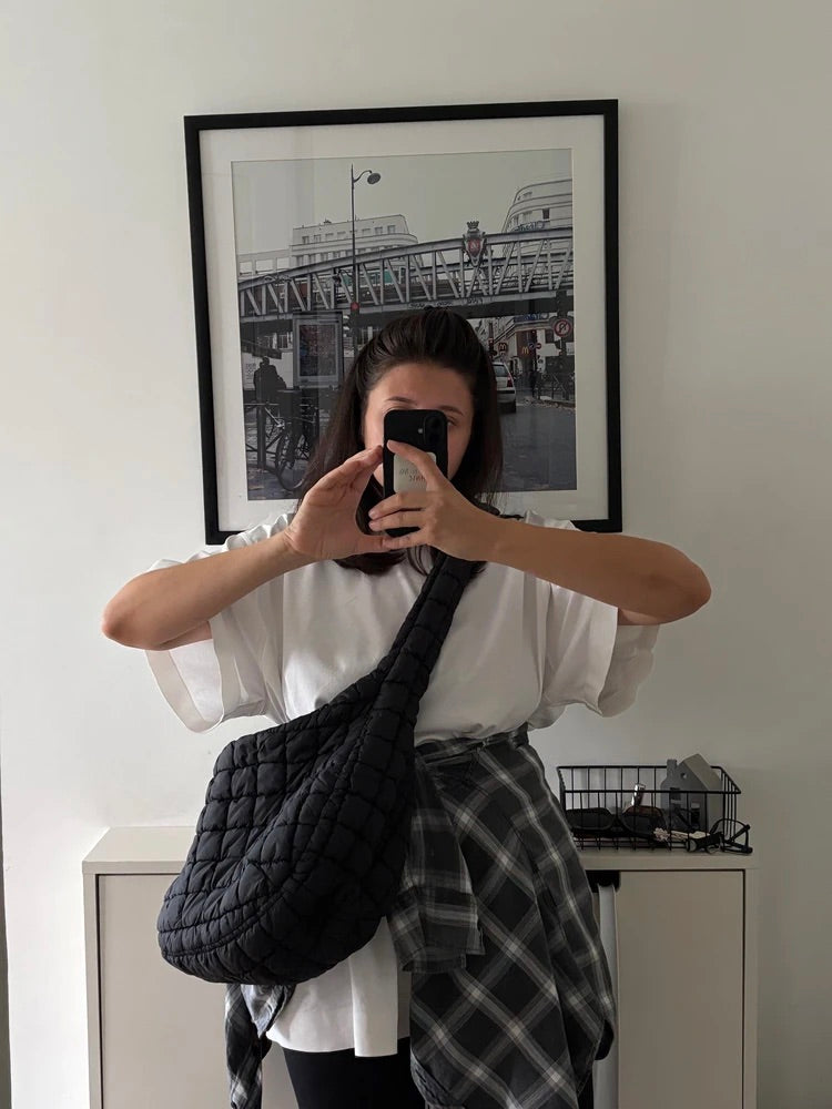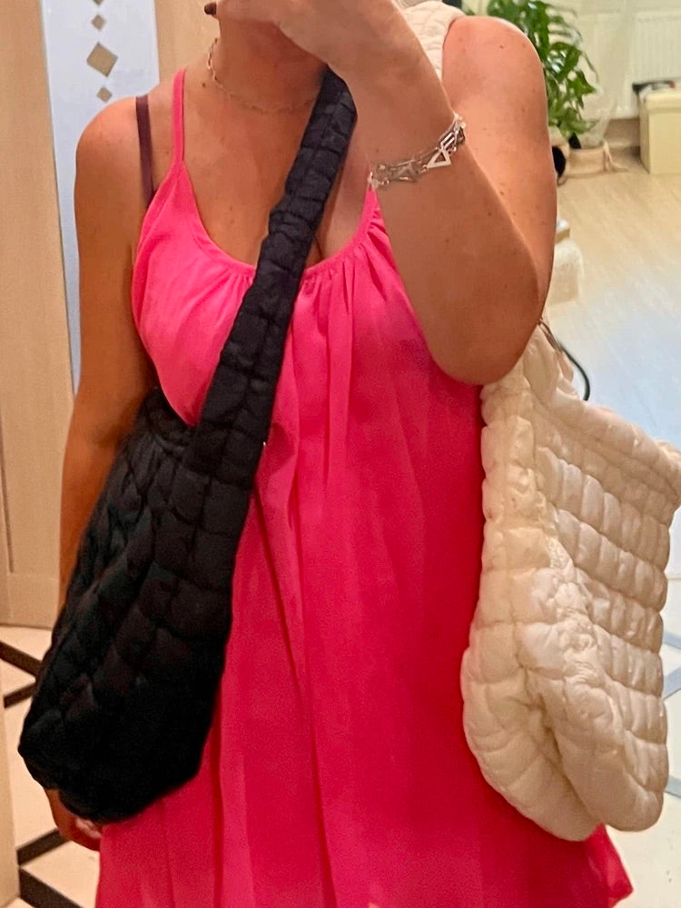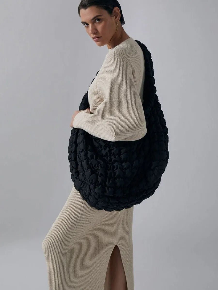 Adottate uno stile deciso con questa borsa nuvola oversize dalla texture trapuntata ineguagliabile. Il suo effetto matelassé le conferisce un volume generoso pur restando incredibilmente leggera da portare. Pensata sia per i ritmi quotidiani che per le fughe improvvisate, questa borsa si indossa comodamente sia a spalla che a tracolla grazie alla sua ampia e morbida tracolla.