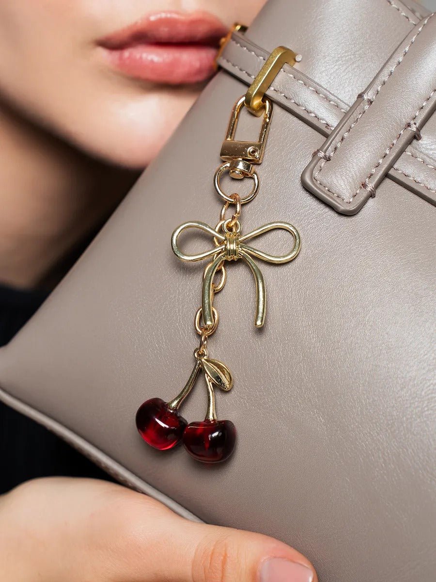 Portachiavi borsa ciliegia, gioiello per borsa, ciondolo frutto rosso, accessorio borsa fantasia, pendente borsa dorato, modello Céria